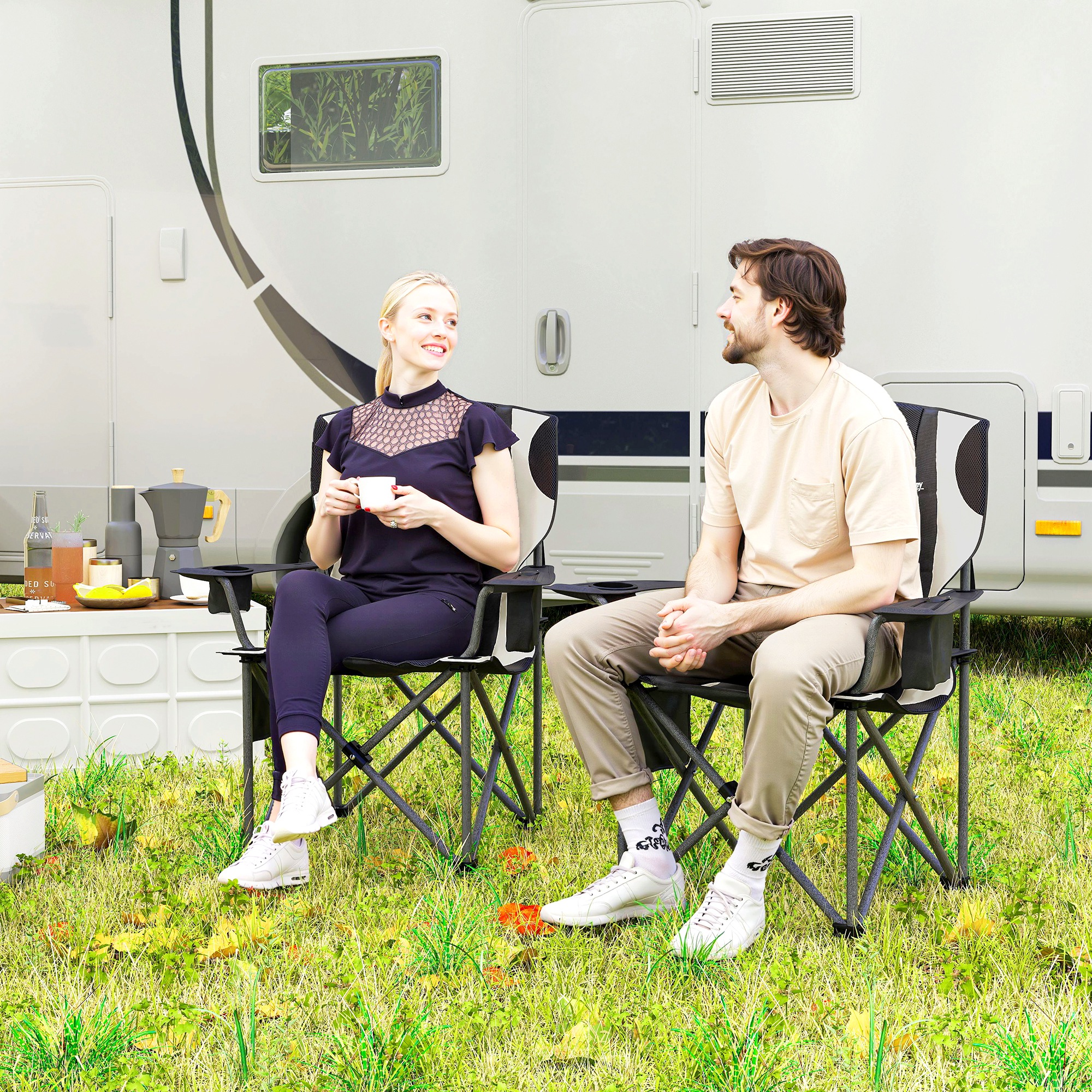 - Deluxe padded camping chairs ensure maximum comfort and support