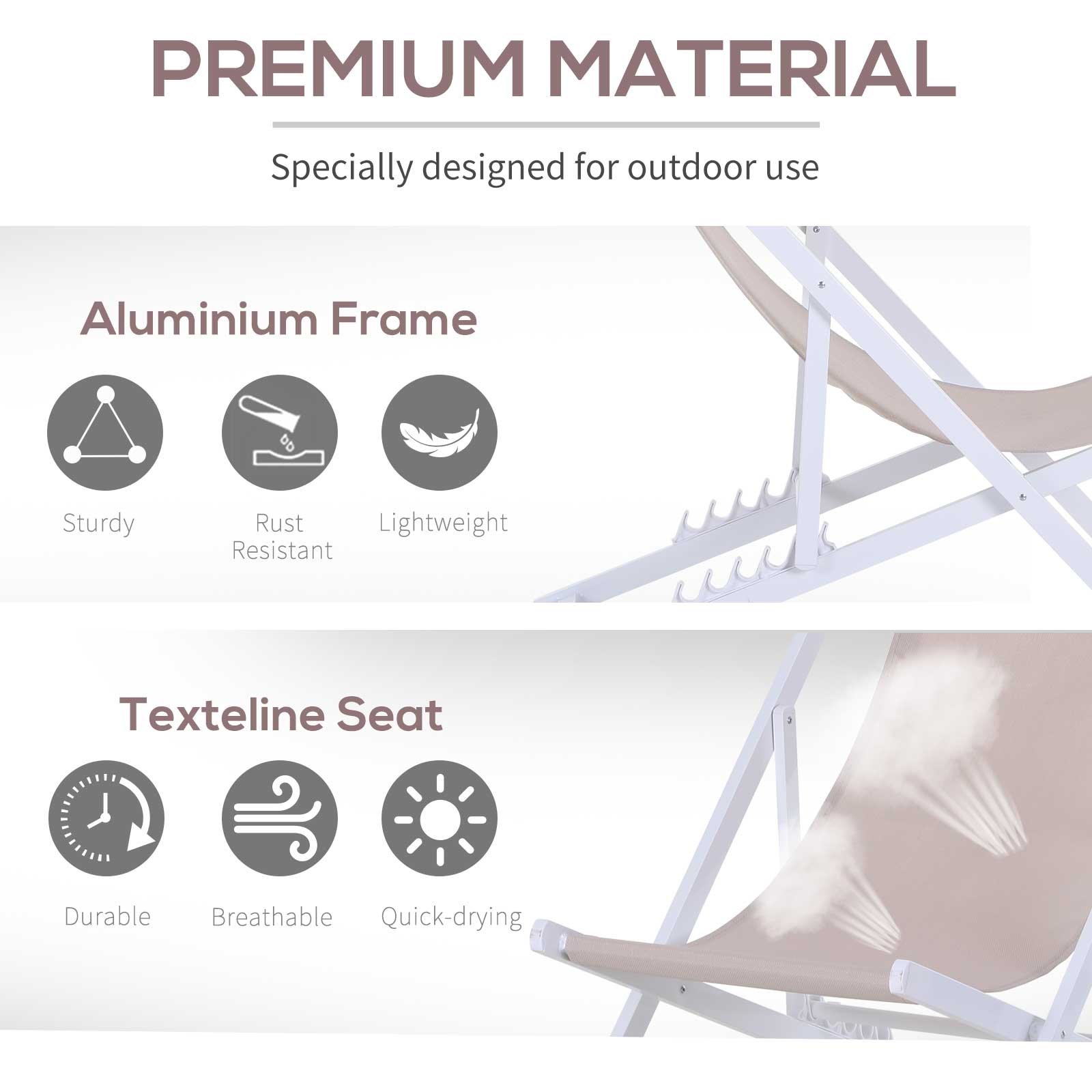 - Material: Aluminum, Texteline Fabric