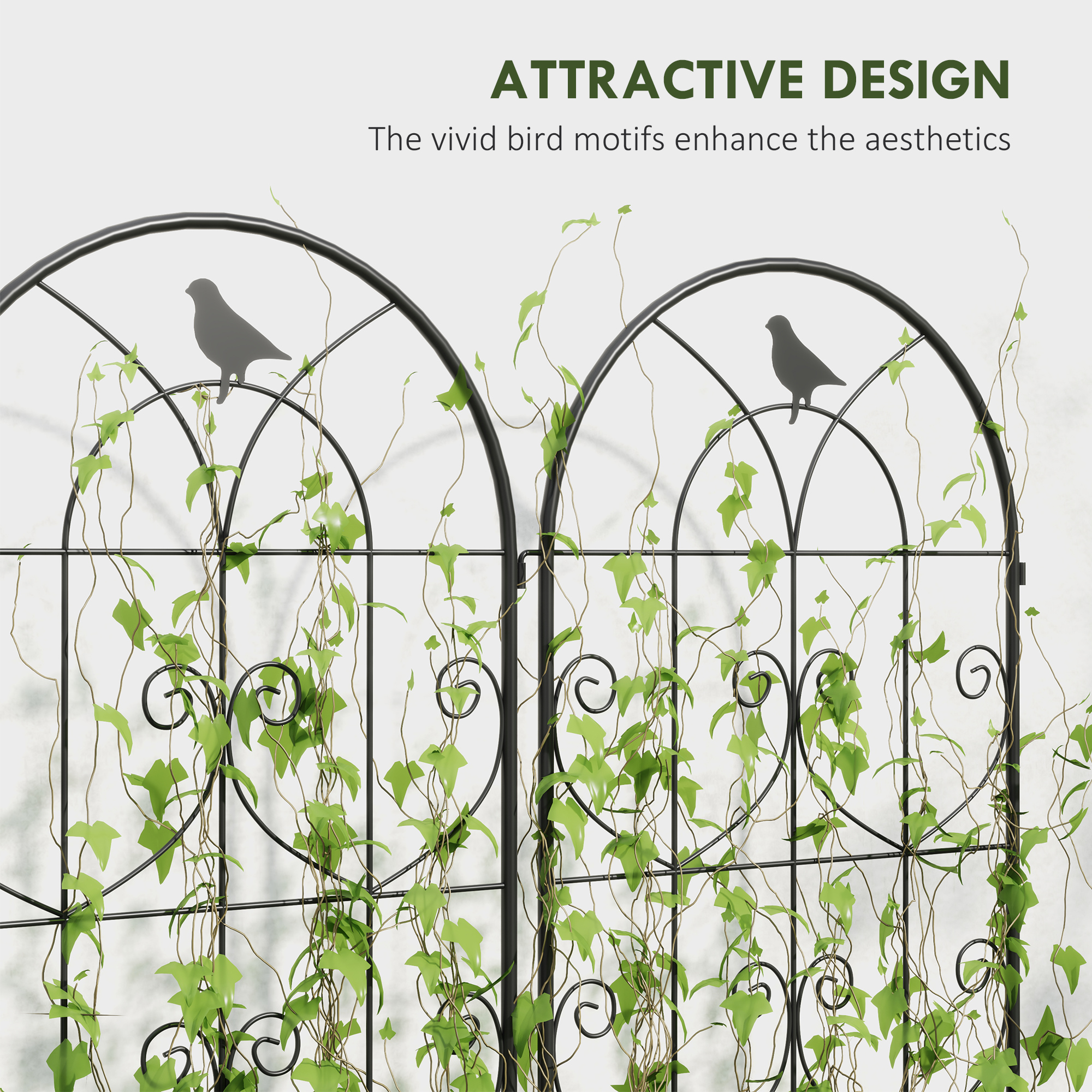Transform your garden into an enchanting oasis with the Outsunny metal trellis. The two trellises, adorned with delicate bird motifs, offer lots of space for climbing plants and double as charming privacy panels. Crafted from weather-resistant, powder-coated metal, they promise lasting support and easy ground insertion. The plant supports for garden are great for gardeners who wish to add a touch of elegance while providing practical plant supports.