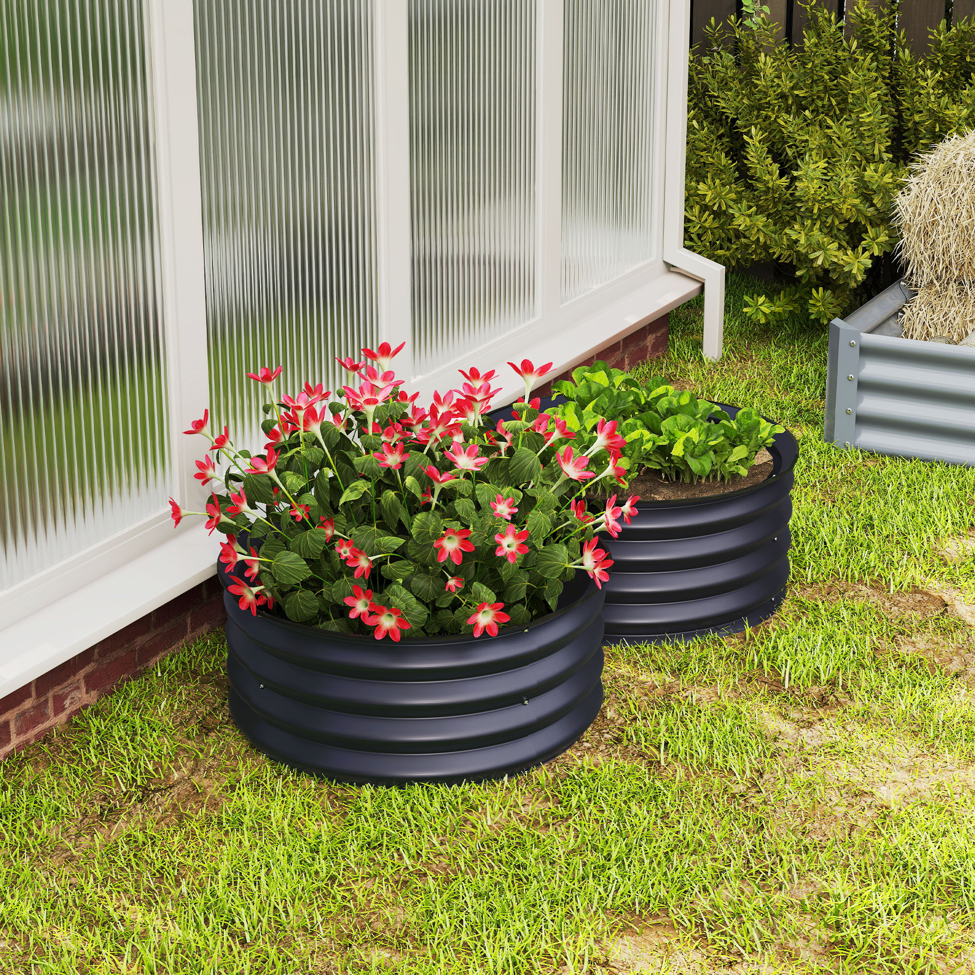 The raw, unpolished design of these two Outsunny planters makes them a must for outdoor spaces. Easy to blend in with natural surroundings, they are ideal for every garden. Made from galvanised steel, each piece is tough; the open bottom design means there's direct contact with soil for maximum growth. Complete with rubber-sealed top to pick up and carry safely. Comes in a set of two for double the growing power.