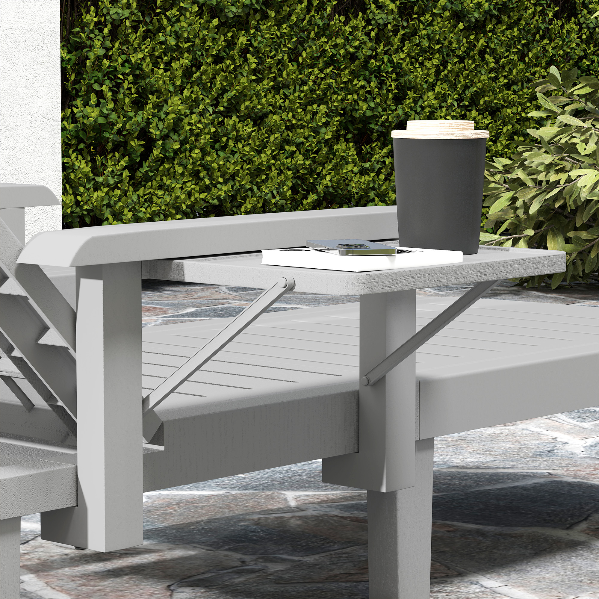 Discover the comfort of the Outsunny Sun Lounger, tailored for relaxation! With 5-level reclining positions, you can adjust from a low 32 cm to a lofty 88 cm to find your optimal spot. Enjoy the convenience of ergonomic armrests and a handy foldable side table. The weather-resistant, wood-like plastic loungers are your great companion for garden lounging or sunbathing.