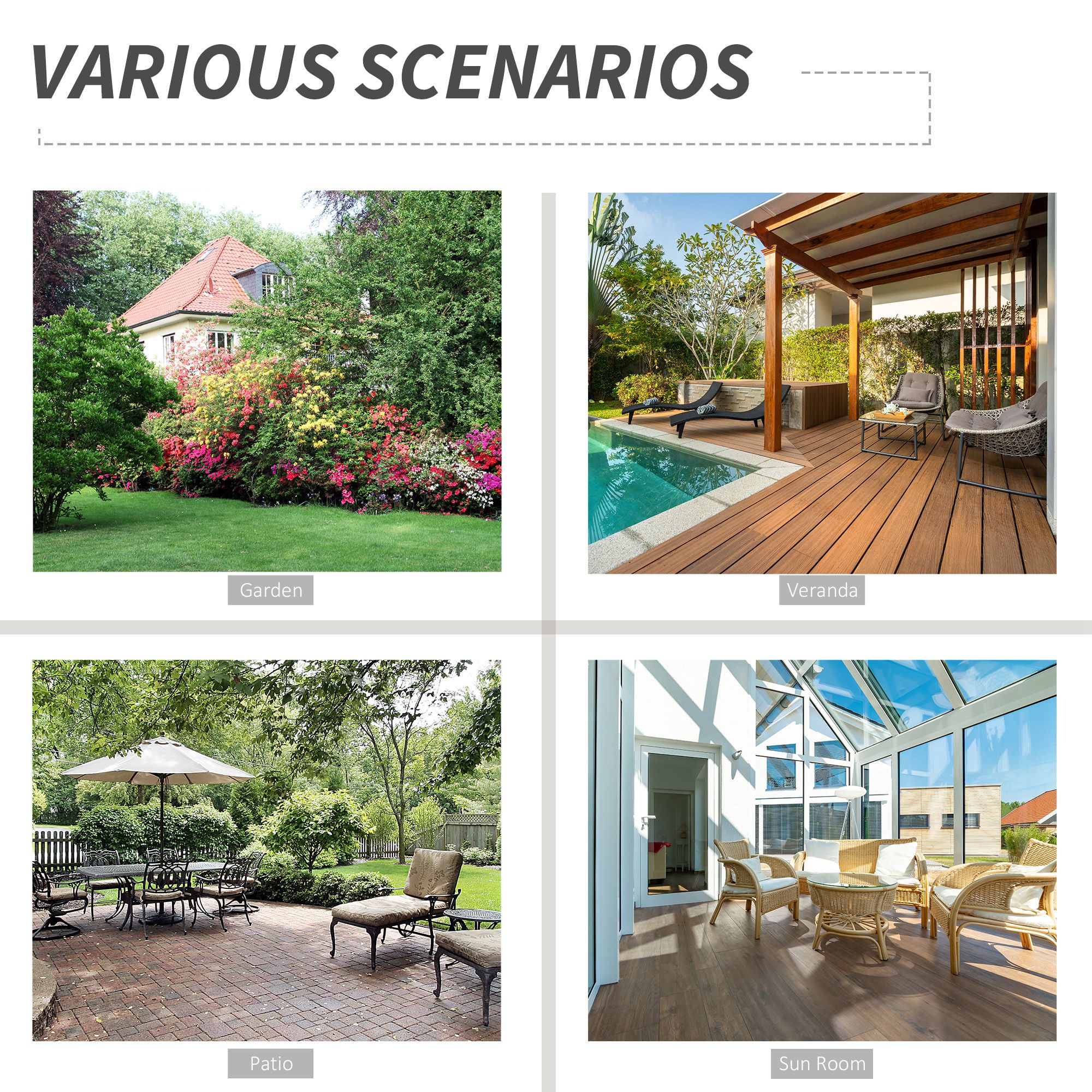 - Suitable for patios, balconies and gardens