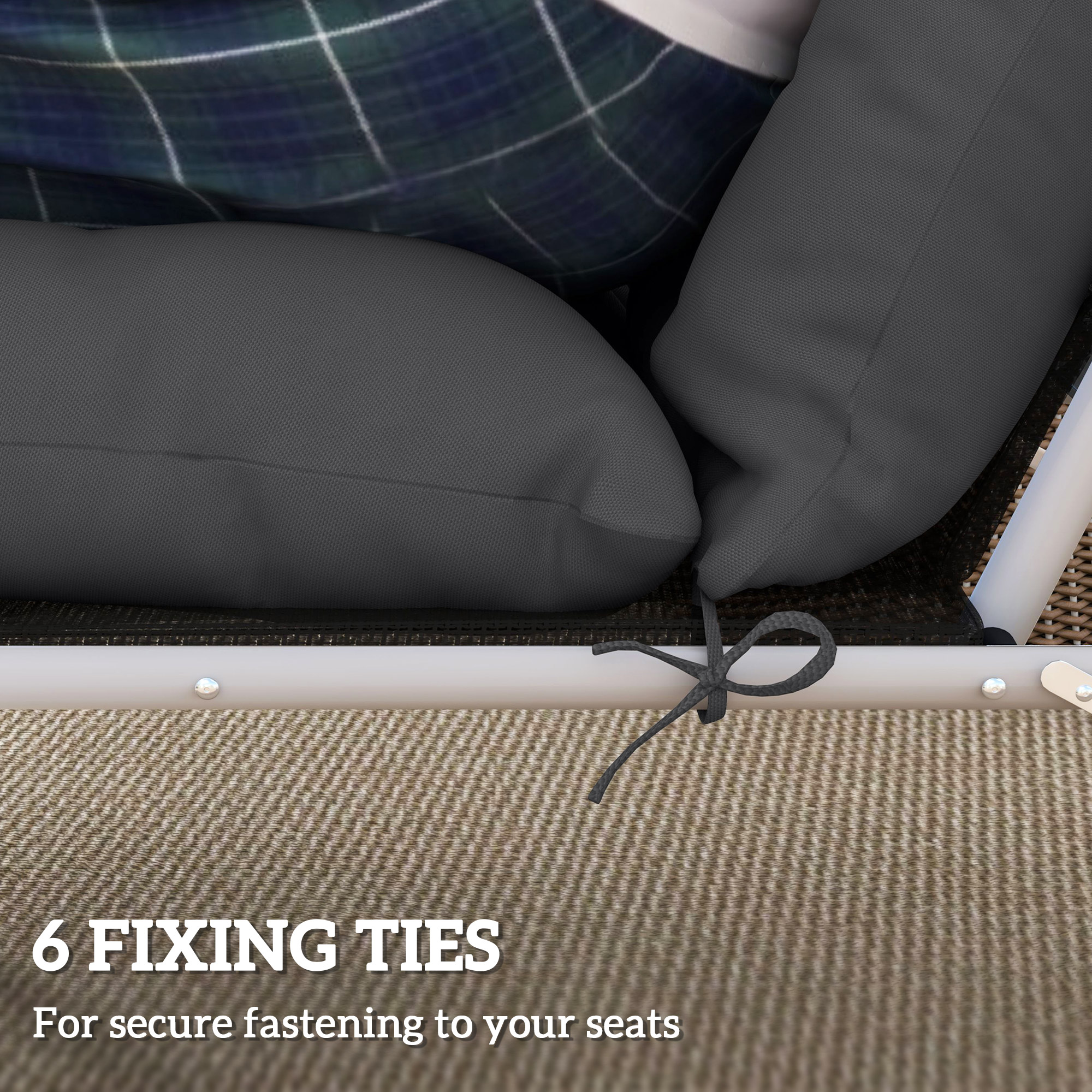 Upgrade and relax on your outdoor recliner, with this Outsunny sun lounger cushion set. Both cushions are filled with high-resilience PP foam - long-lasting comfort, even during extended sitting. The polyester fabric covers are durable, so they are made to last. Both cushions come with six tie fastenings to secure in place.