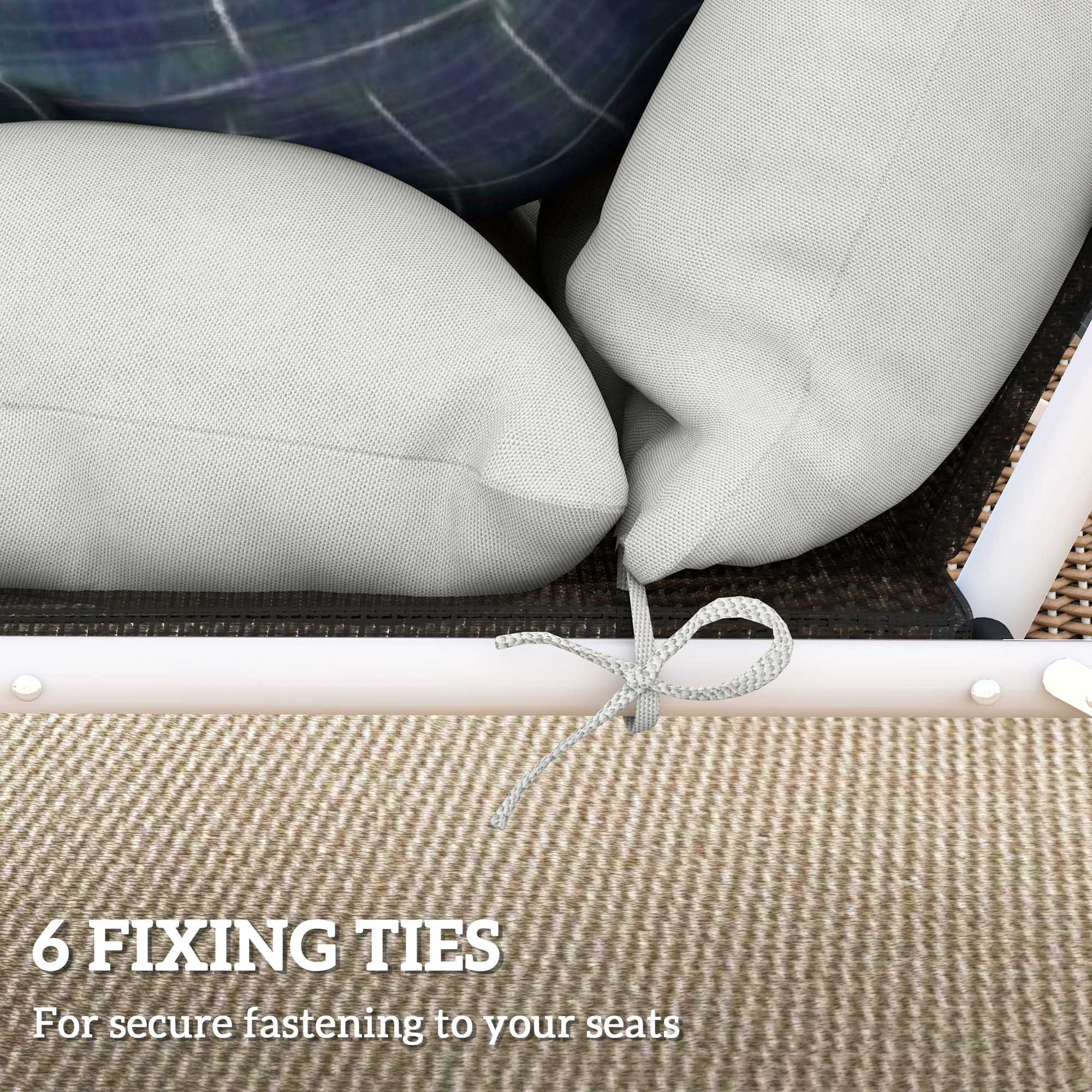 Upgrade and relax on your outdoor recliner, with this Outsunny sun lounger cushion set. Both cushions are filled with high-resilience PP foam - long-lasting comfort, even during extended sitting. The polyester fabric covers are durable, so they are made to last. Both cushions come with six tie fastenings to secure in place.