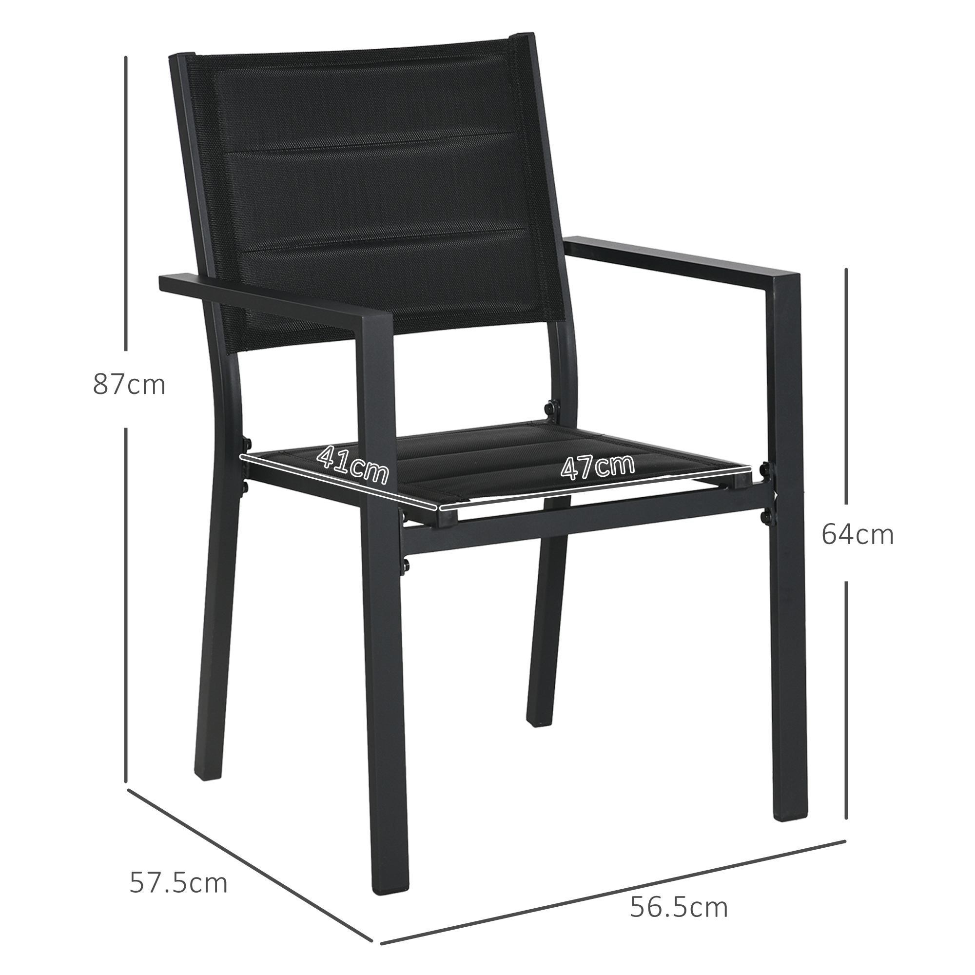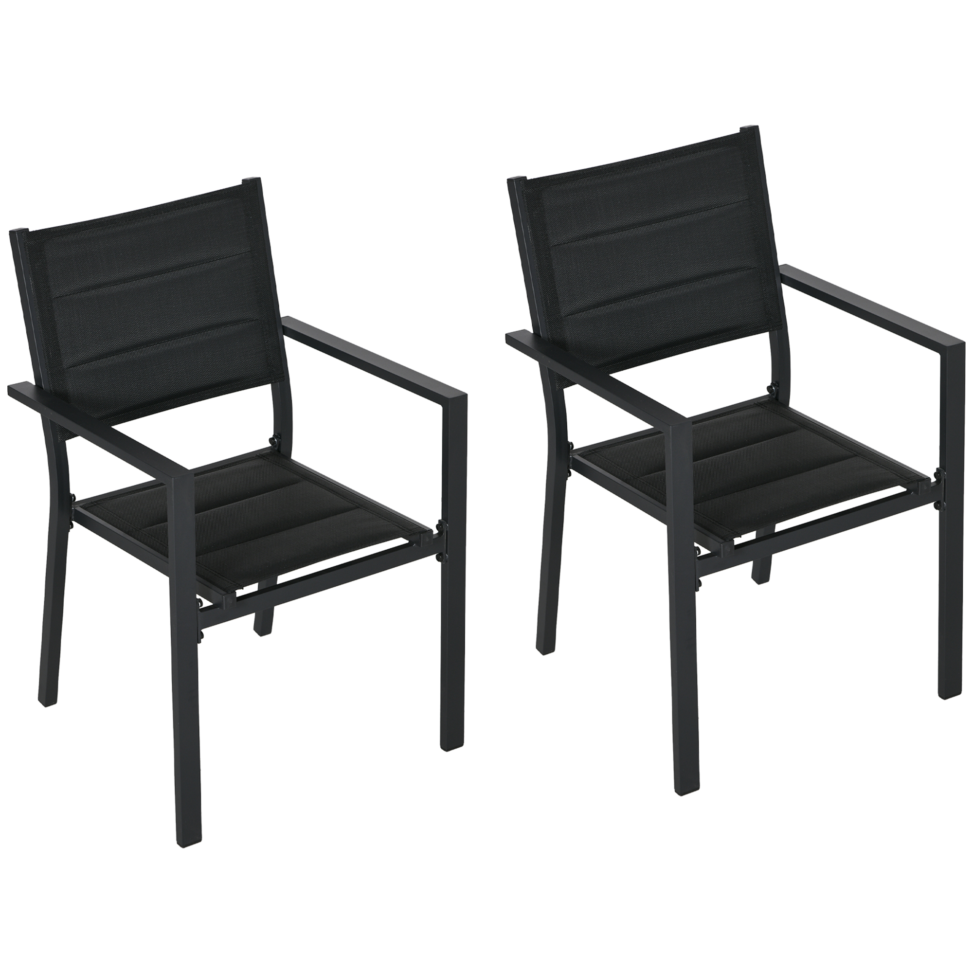 The powder coated aluminium frames of these Outsunny chairs mean a strong, supportive structure. High backs and arms for support. Aluminium frames mean a strong supportive core. Stack on each other when not being used to save space. Comes in a set of two.