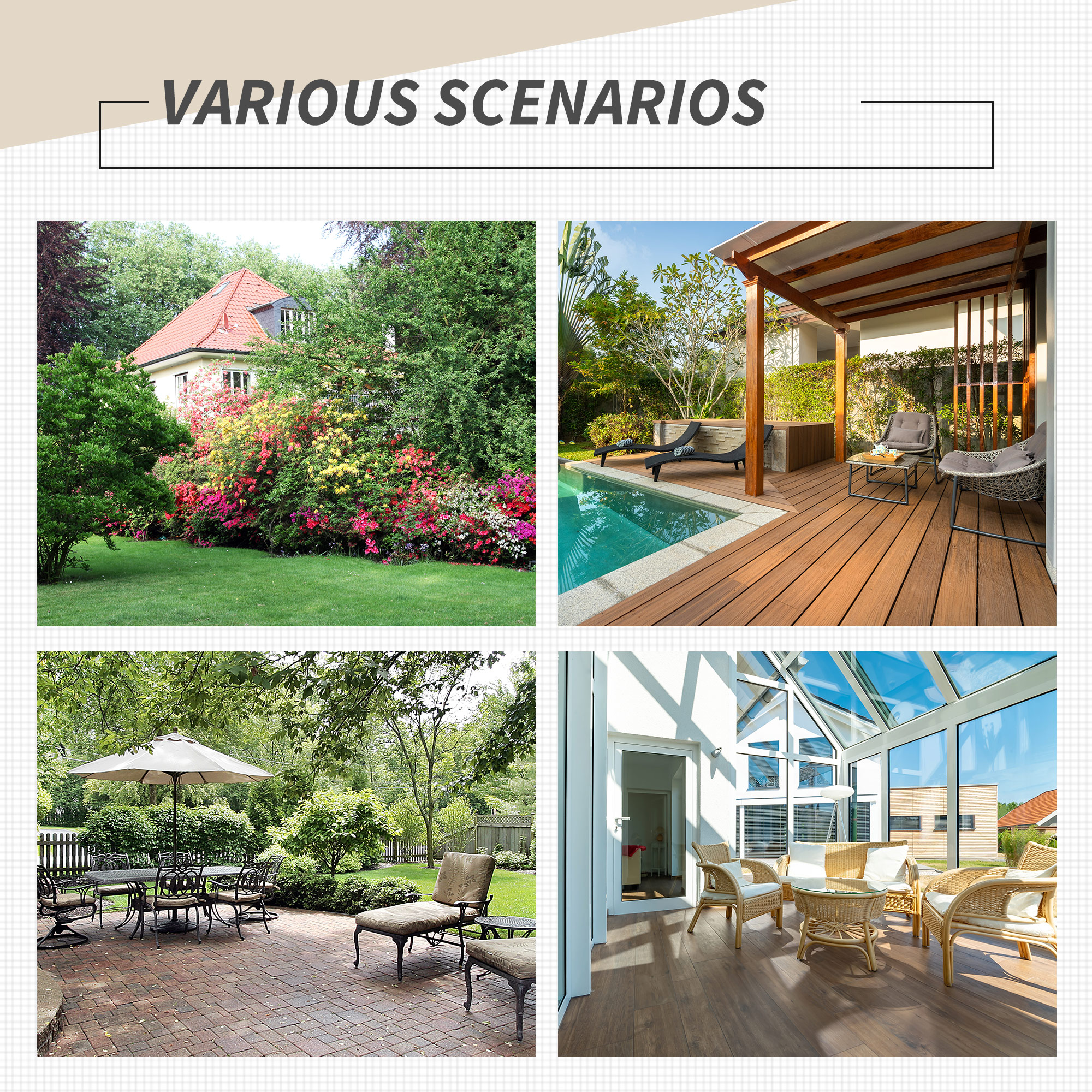- Suitable for patios, balconies and gardens