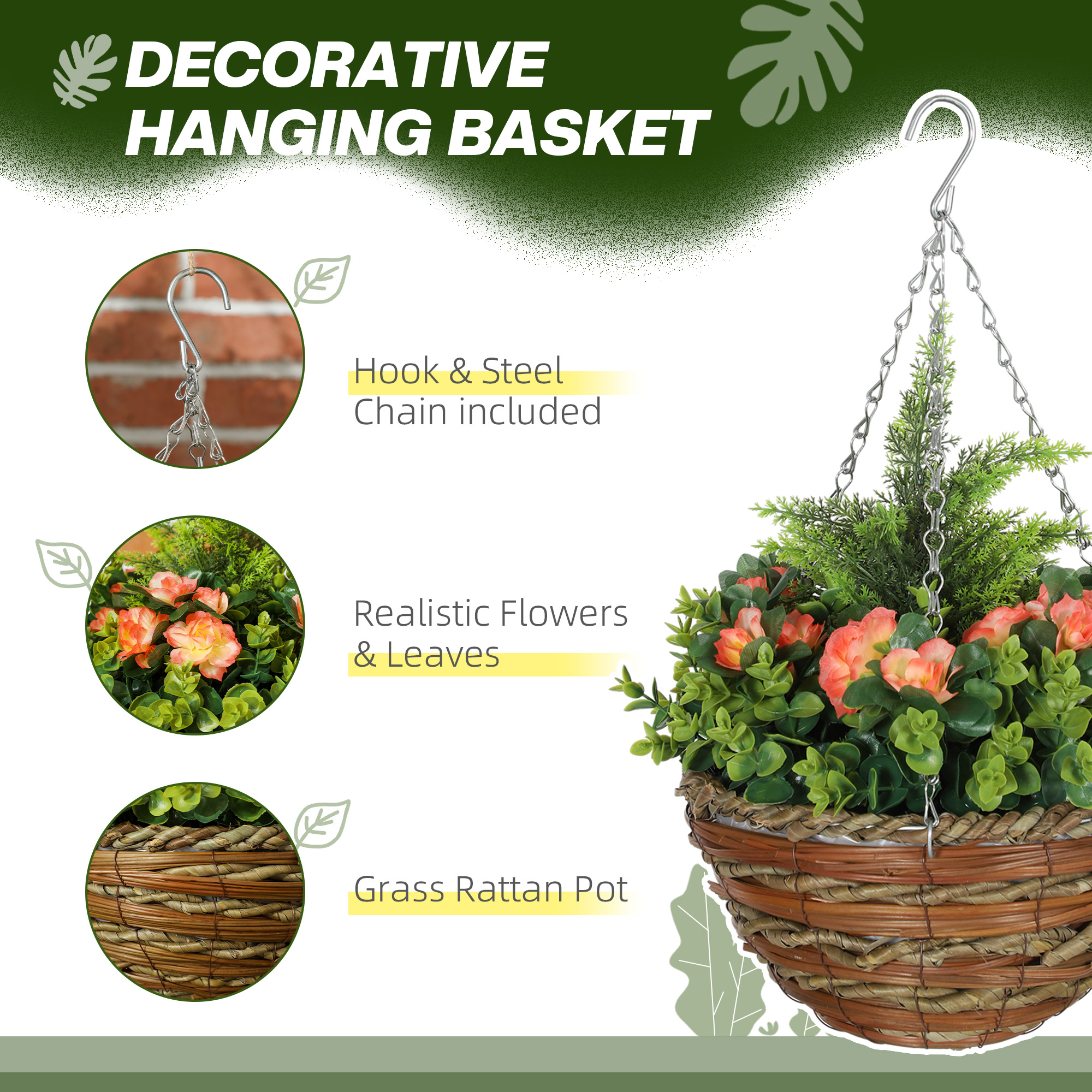 Dress up spaces in naturally colourful way, with no effort required-go for these Outsunny artificial lisianthus flower pots. The fake plants come in a set of two so you can create a matching look easily. Made from top quality plastic for long-term use and a realistic look and feel, each pot features 18 faux flowers and 72 leaves, giving it a beautiful voluptuous look. These plastic plants come with a wicker pot and metal hook and chain, so you have everything you need in the package.