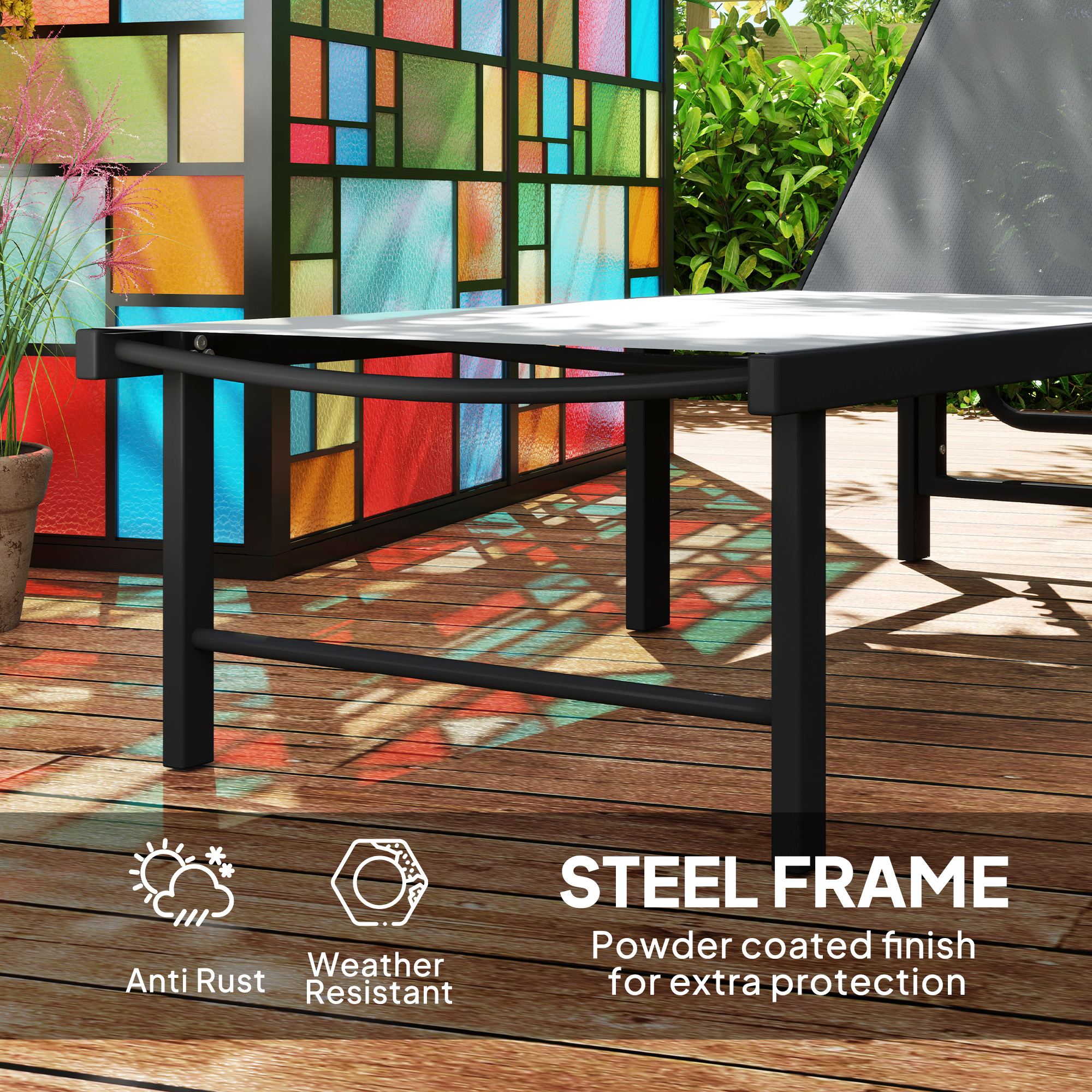 Lay the day away with your favourite person - grab this set of two Outsunny garden sun loungers. The backs of these reclining sun loungers can be set to five different positions - lie back to a position you want. The breathable texteline seat panels hold you comfortably and keep you cool. The powder coated steel frames mean a strong, supportive core.