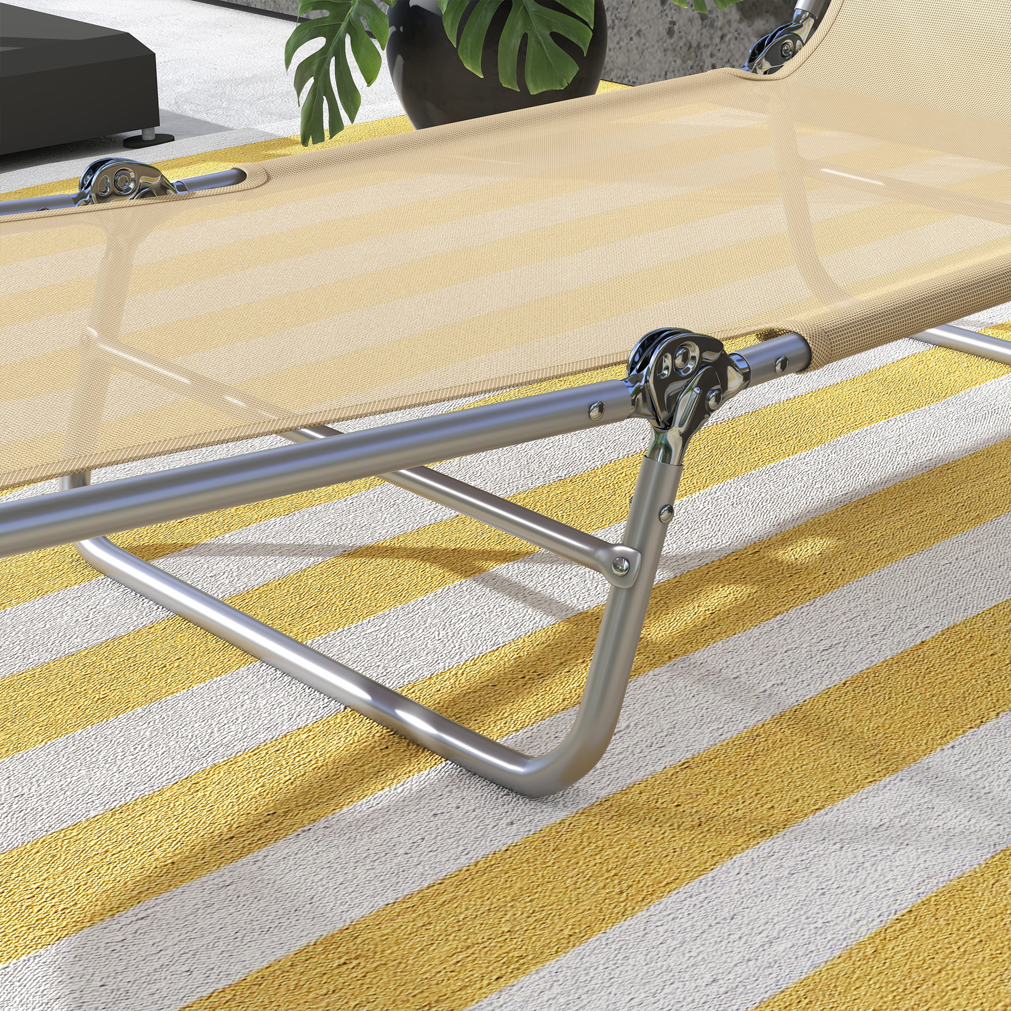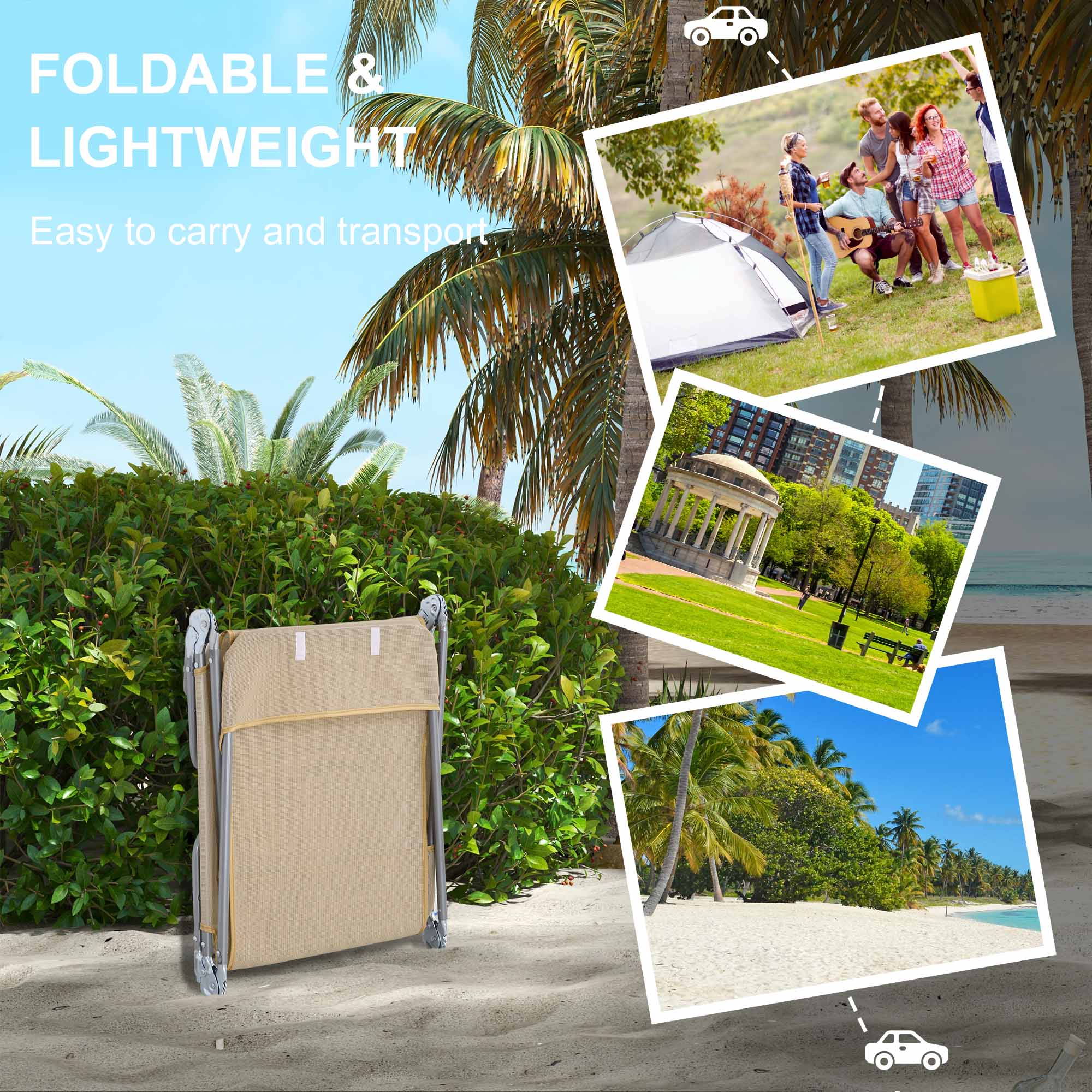 Relax anywhere if your choose, with Outsunny folding sun lounger. Powder coated steel frames mean a strong core, fitted with a soft fabric seat and pillow for comfort. Both feature a reclining back so you can relax to an angle of your choice. Simply fold up and carry to wherever you want.