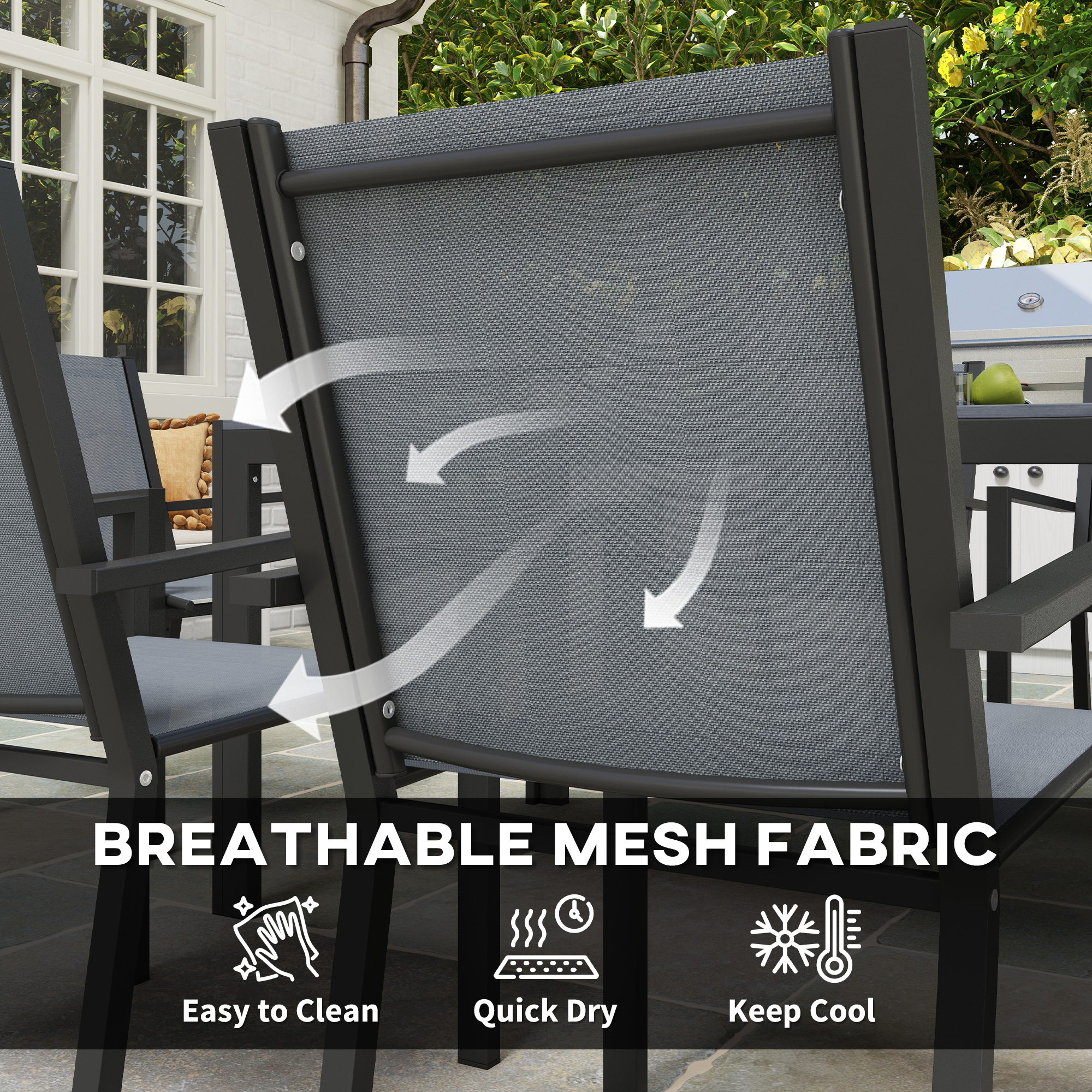 Whether it's for breakfast, brunch or dinner, this Outsunny seven-piece garden dining set brings everyone together. Six stackable chairs to sit with your favourite people, with the large table giving plenty of dining room. Made from plastic wood composite board, the tabletop is strong and low-maintenance. Our garden table and chairs are suitable for outdoor use: the teak-effect design is an excellent addition to outdoor spaces.