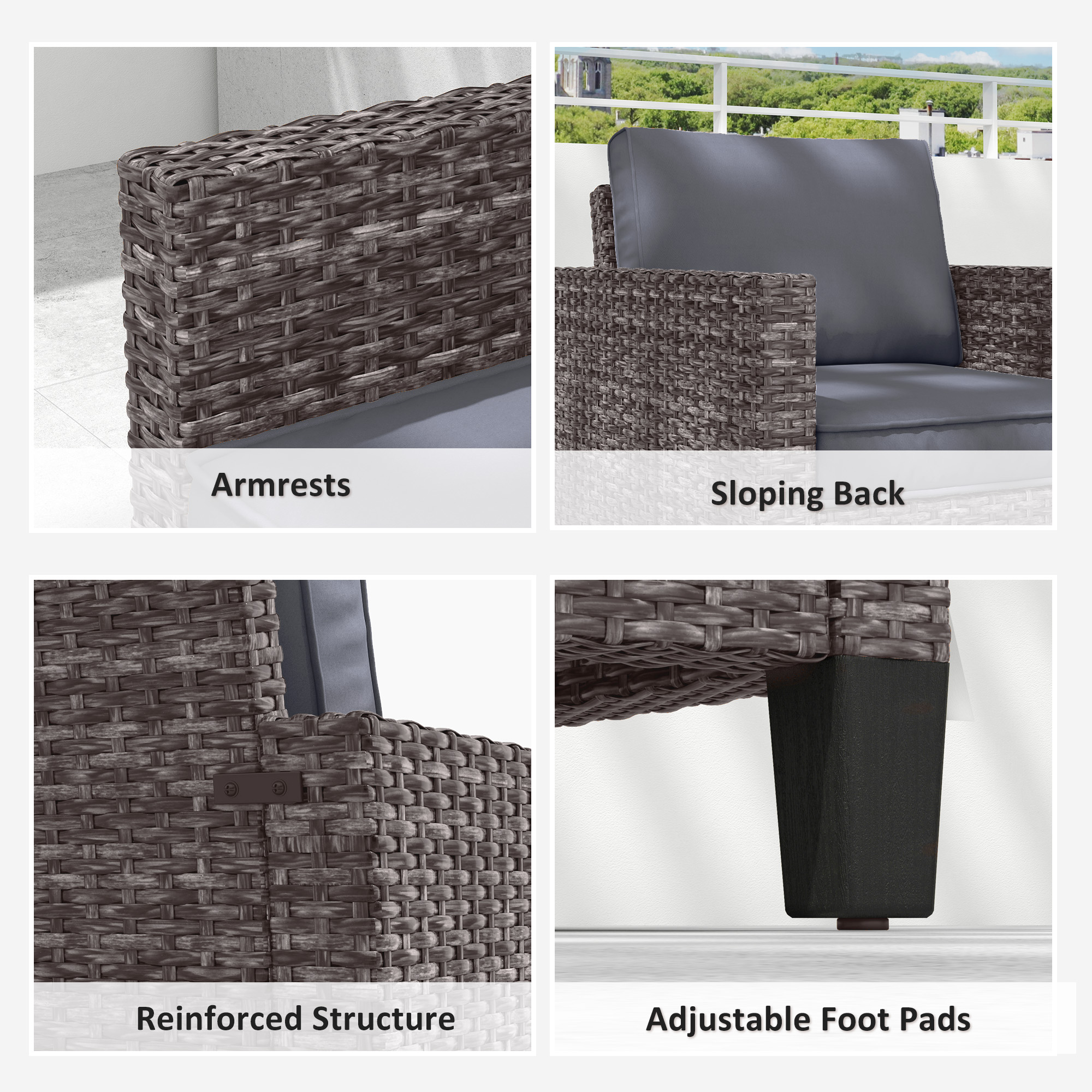 Sink into plenty of comfort outdoors with this Outsunny rattan armchair. A galvanised steel frame with powder coating means a strong core, wrapped in tough plastic wicker for a protective outer. Thick cushions ensure comfort, with removable and washable covers for comfort. Outdoor armchair is complete with adjustable feet to stand steady and balanced.
