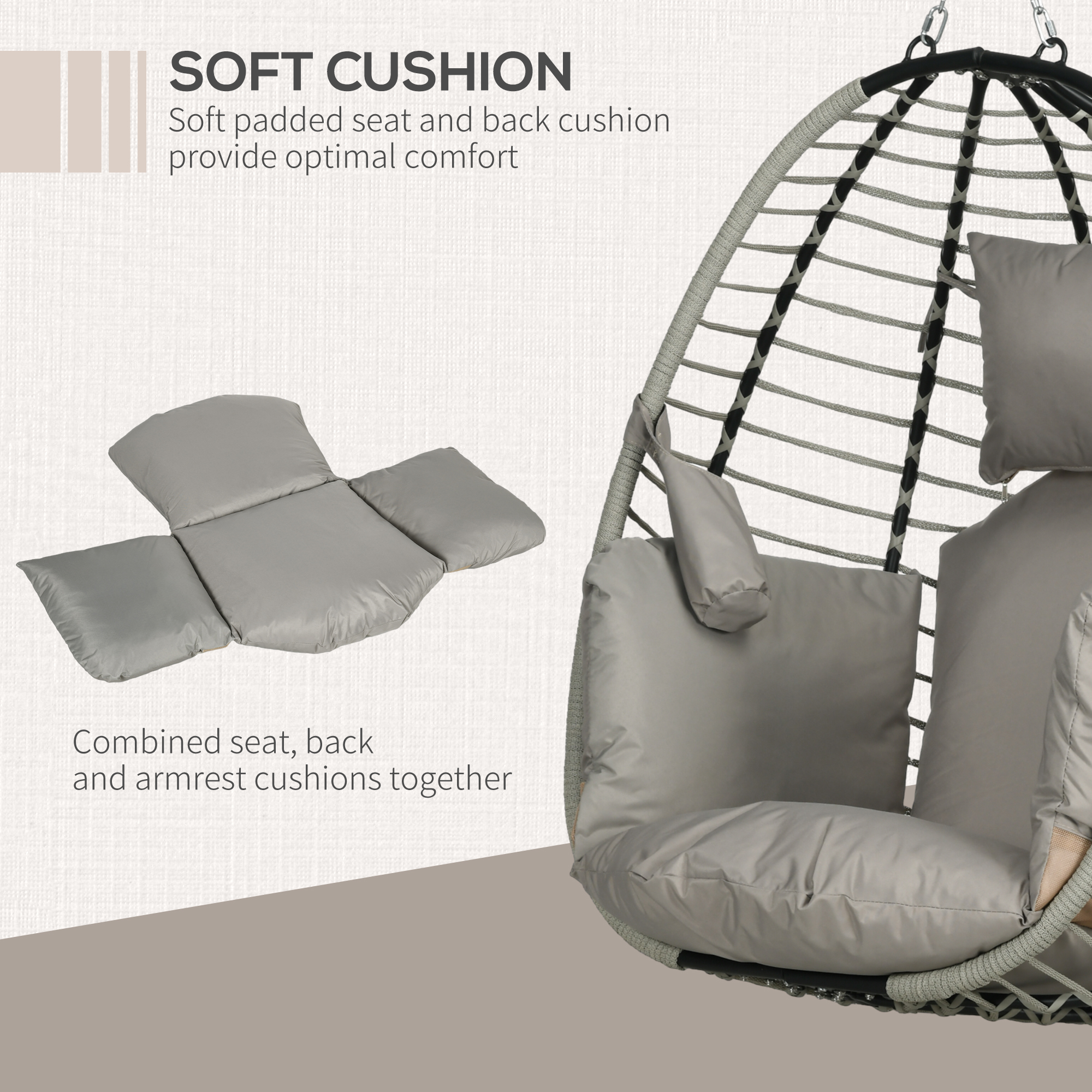 Make the most of lazy days with this Outsunny hanging egg chair. The curved back, spacious seat and thick padded seat cushion means plenty of comfort. The hanging stand is made from powder coated steel: a strong and supportive core. The foldable seat means it can be stored basket, space-saving and convenient. Use indoors or outdoors, as you choose.