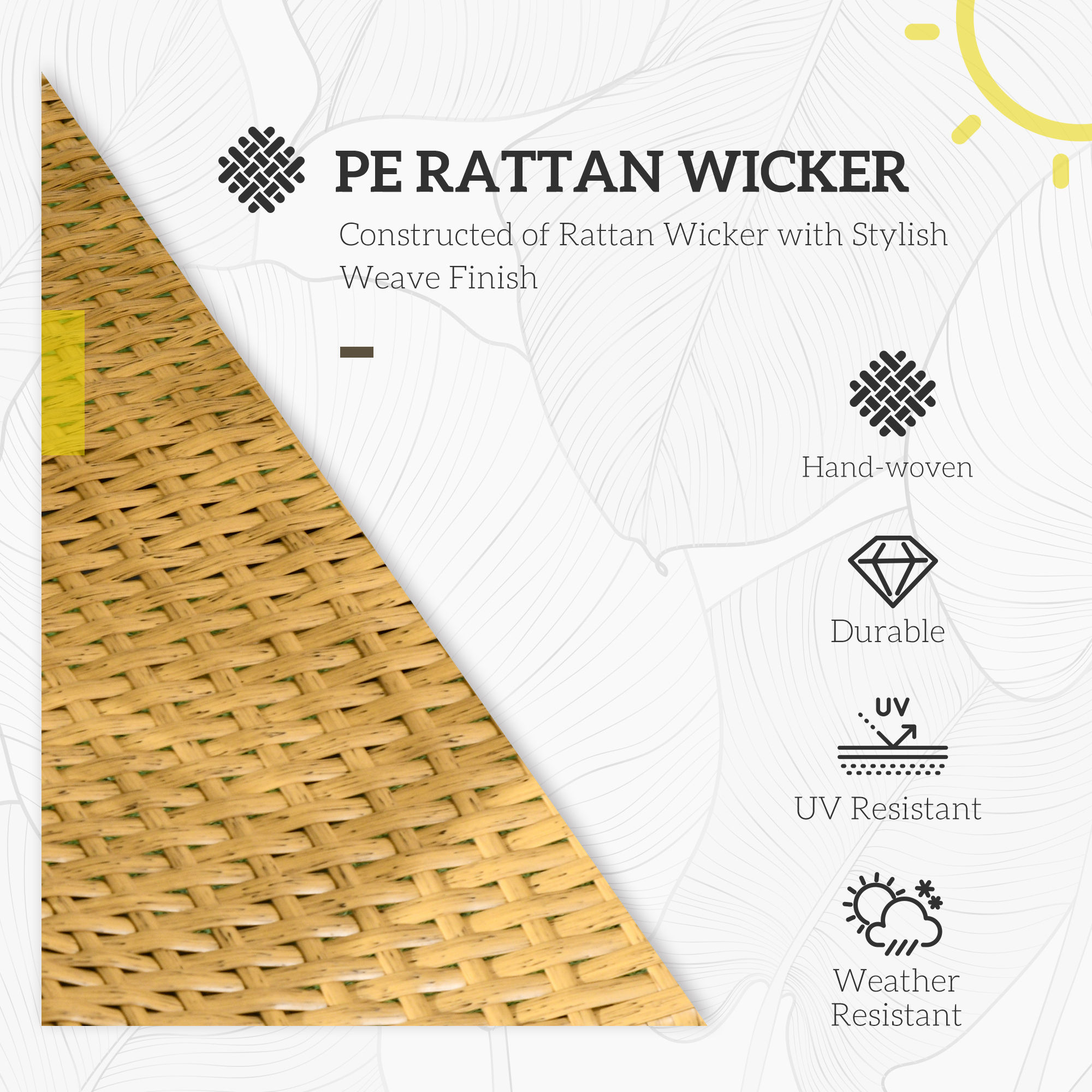 - Strong steel frame, wrapped in protective and stylish plastic wicker
