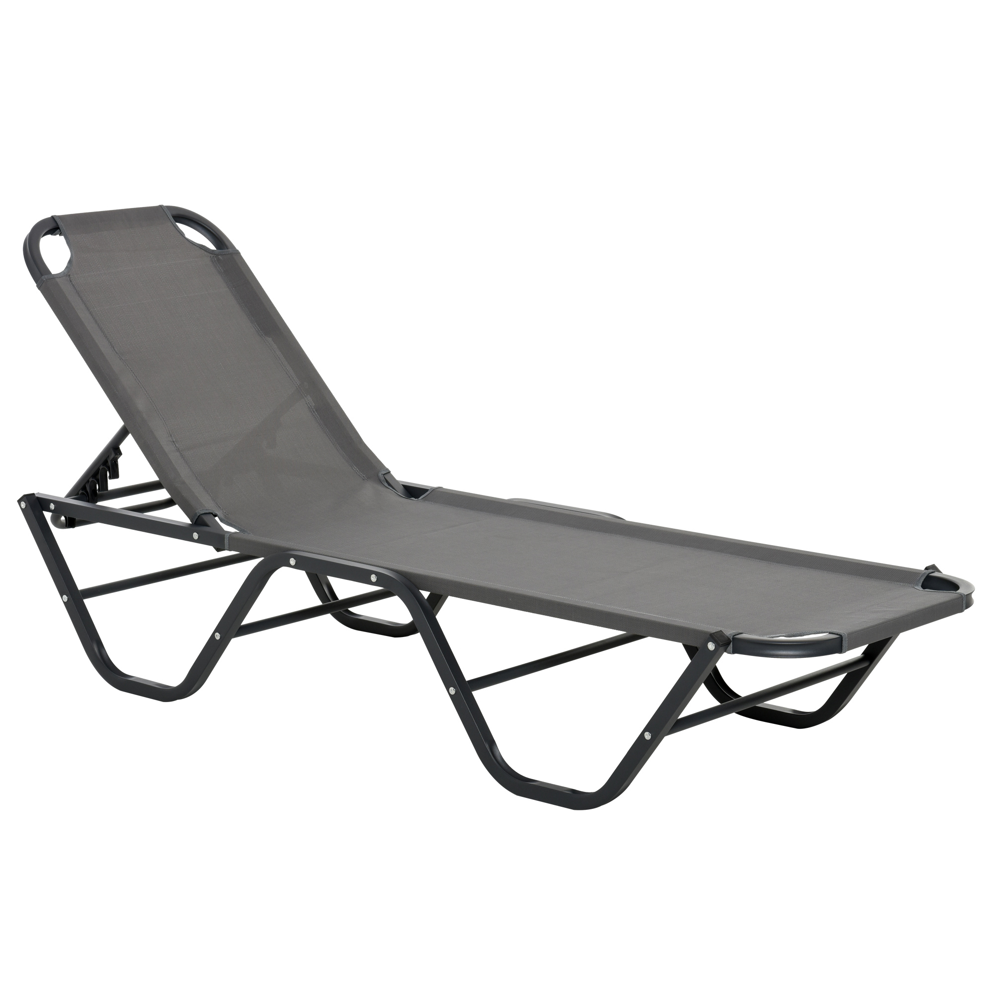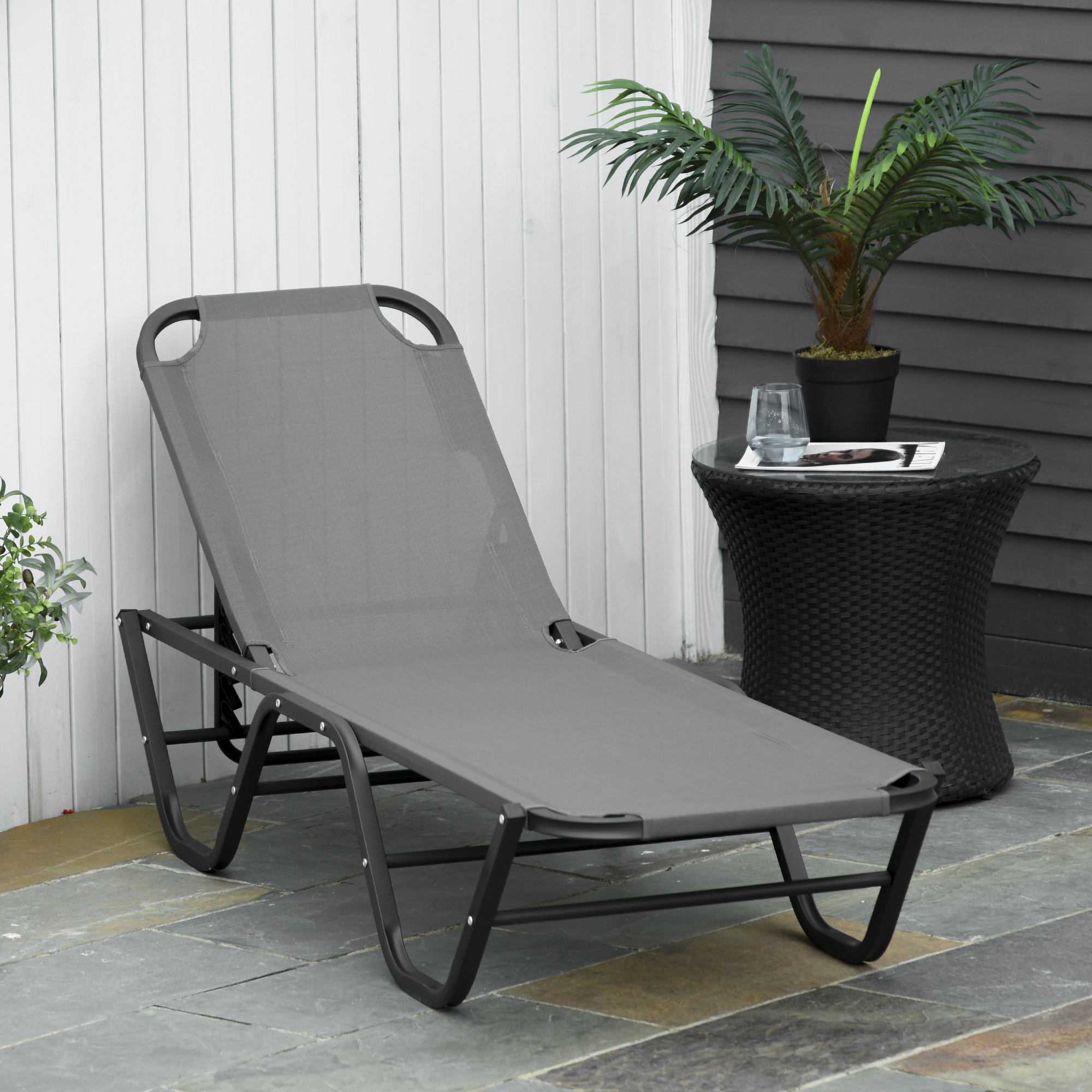 The simple and easy way to relax outdoors - grab this minimalistic Outsunny garden lounger. Using aluminium for a frame which is tough - powder coated for extra strength - you are able to relax with full support; the four stump legs keep you balanced. The back is adjustable to five different positions, you are able to lie back to an angle you find most comfortable. The fabric seat is soft and smooth on the skin, making your time under the sun as enjoyable as ever before.