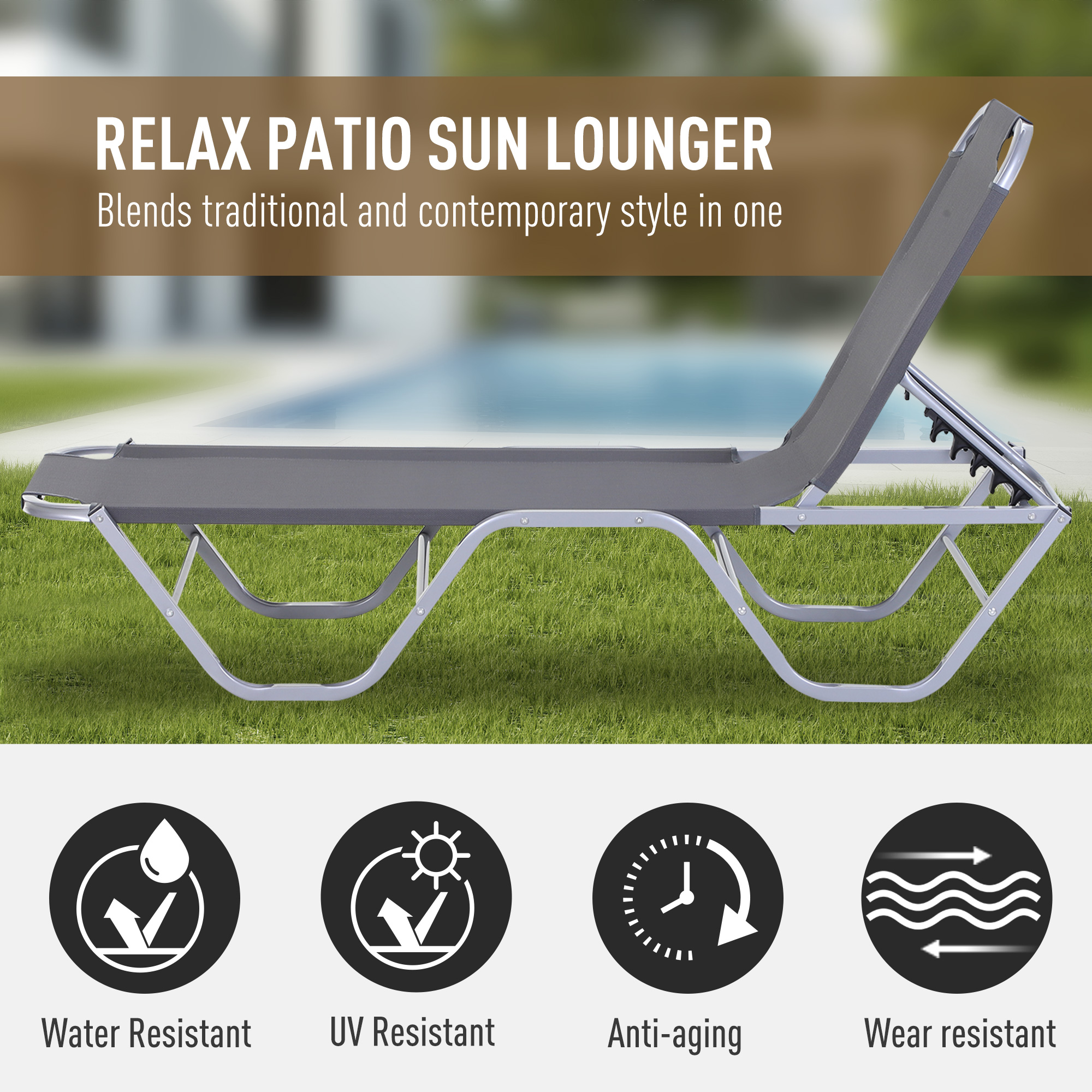 The simple and easy way to relax outdoors - grab this minimalistic Outsunny lounger. Using aluminium for a frame which is tough - powder coated for extra strength - you are able to relax with full support; the four stump legs keep you balanced. The back is adjustable to five different positions, you are able to lie back to an angle you find most comfortable. The fabric seat is soft and smooth on the skin, making your time under the sun as enjoyable as ever before.