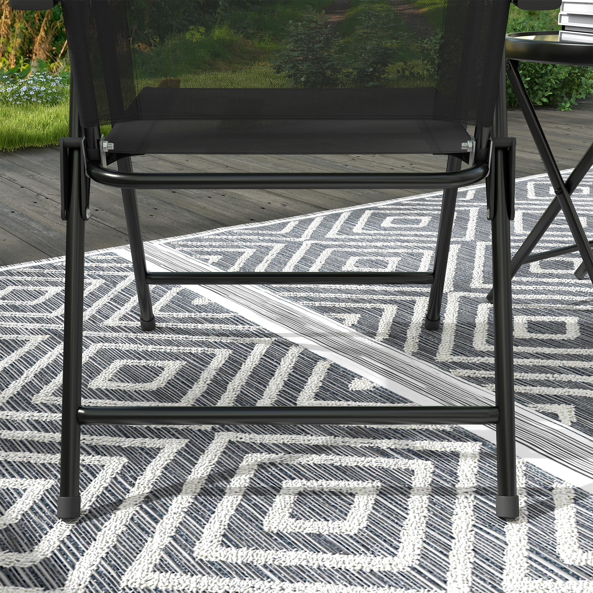 This Outsunny set comes with a round table and two matching chairs - enjoy time outdoors with company, practically anywhere. Powder coated metal frames mean strong cores to support you. Each piece is foldable - easy to carry and store away. The table is fitted with a tempered glass top - a sleek and safe finishing touch.