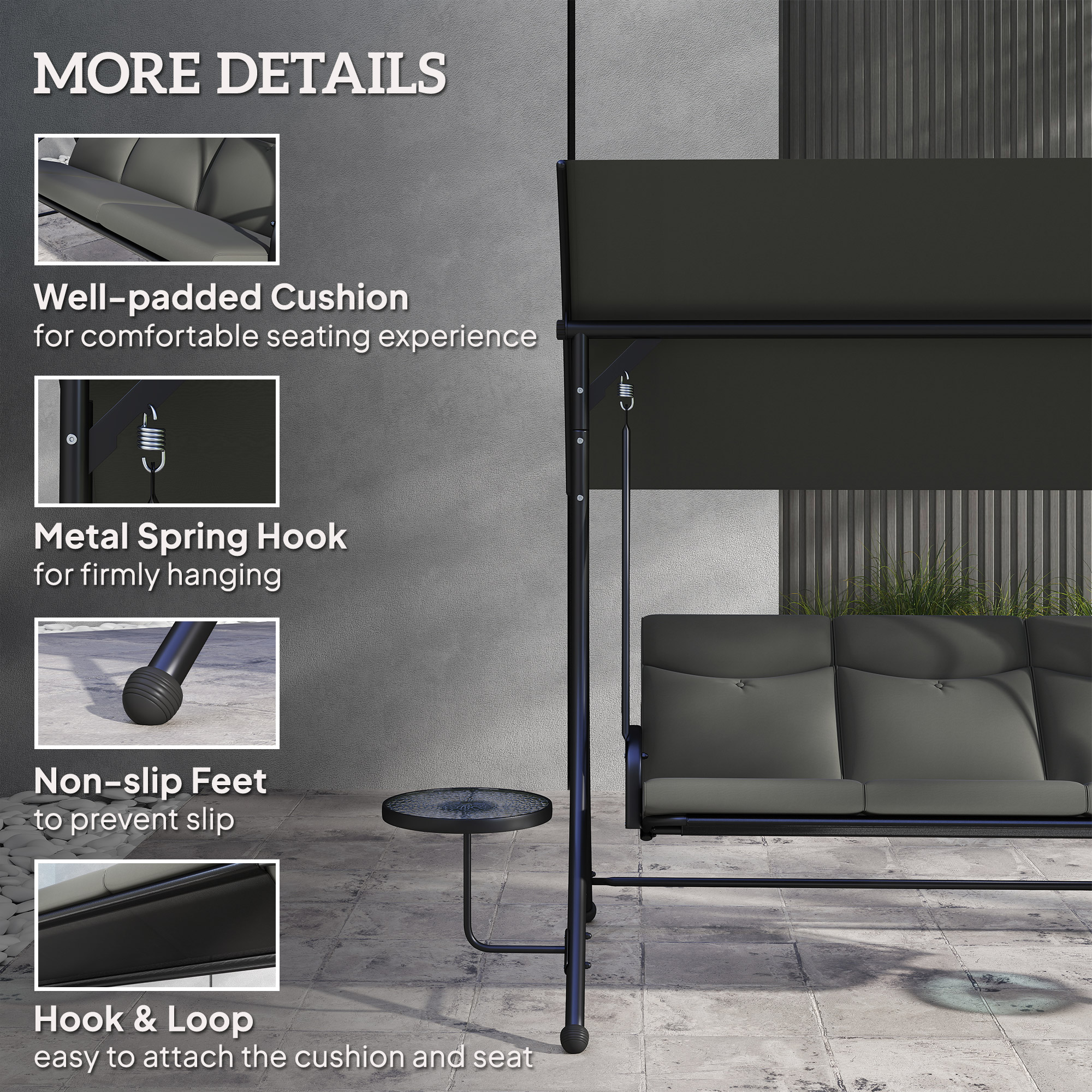 A classic patio swing with a sleek update - two glass tables: this Outsunny swing bench is before than ever before. With a steel frame for a strong core, plus the 'A' legs to stand balanced. Three-seater size offers plenty of room to relax, with a padded seat and back cushion for comfort. The round glass-top tables on each side give you somewhere safe to keep drinks, magazines and more within easy reach. Comes with an adjustable canopy to shelter from the elements.
