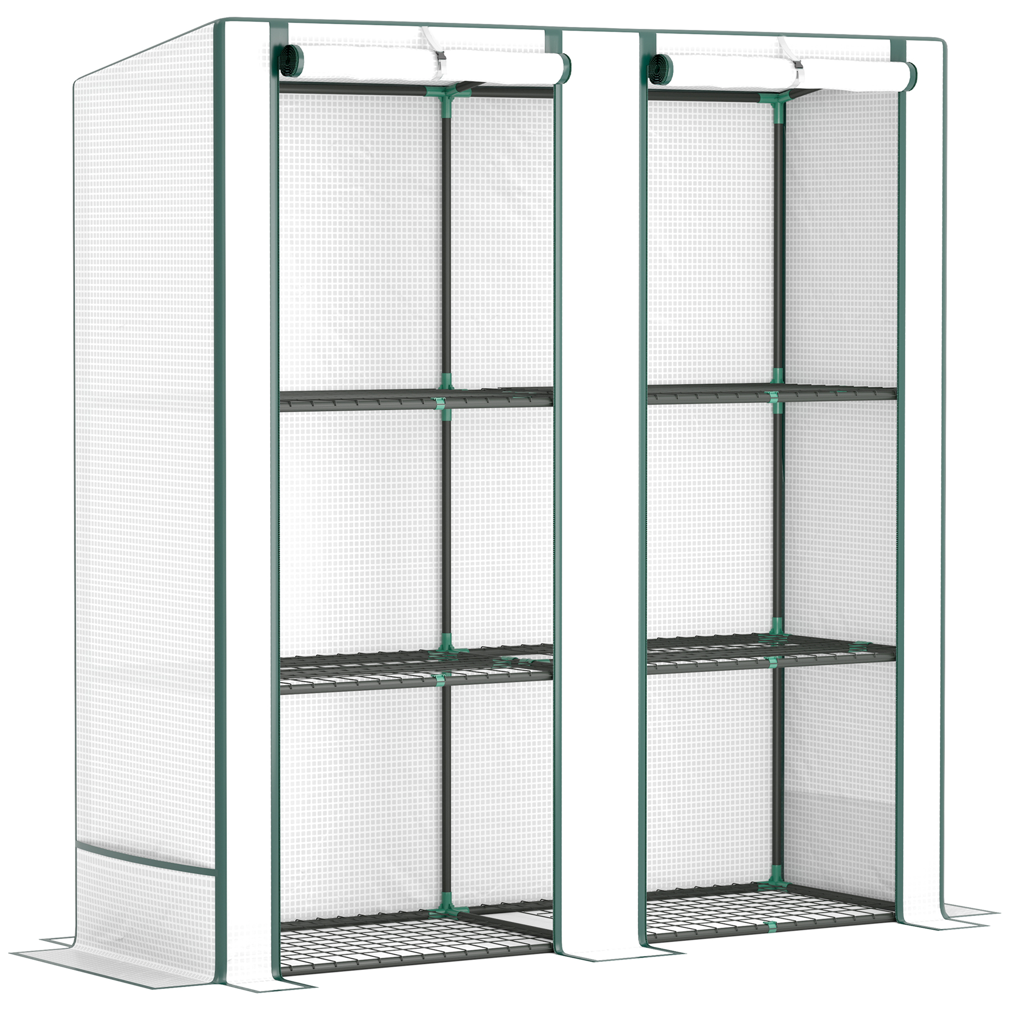 Grow greenery practically anywhere with this Outsunny greenhouse. The three inner shelves offer plenty of space for plants, flower pots and seed trays; the 140g/m² plastic cover shields inside from outer weather. Complete with a zipped door, which rolls up and holds in place to allow in fresh air to promote healthy growth.