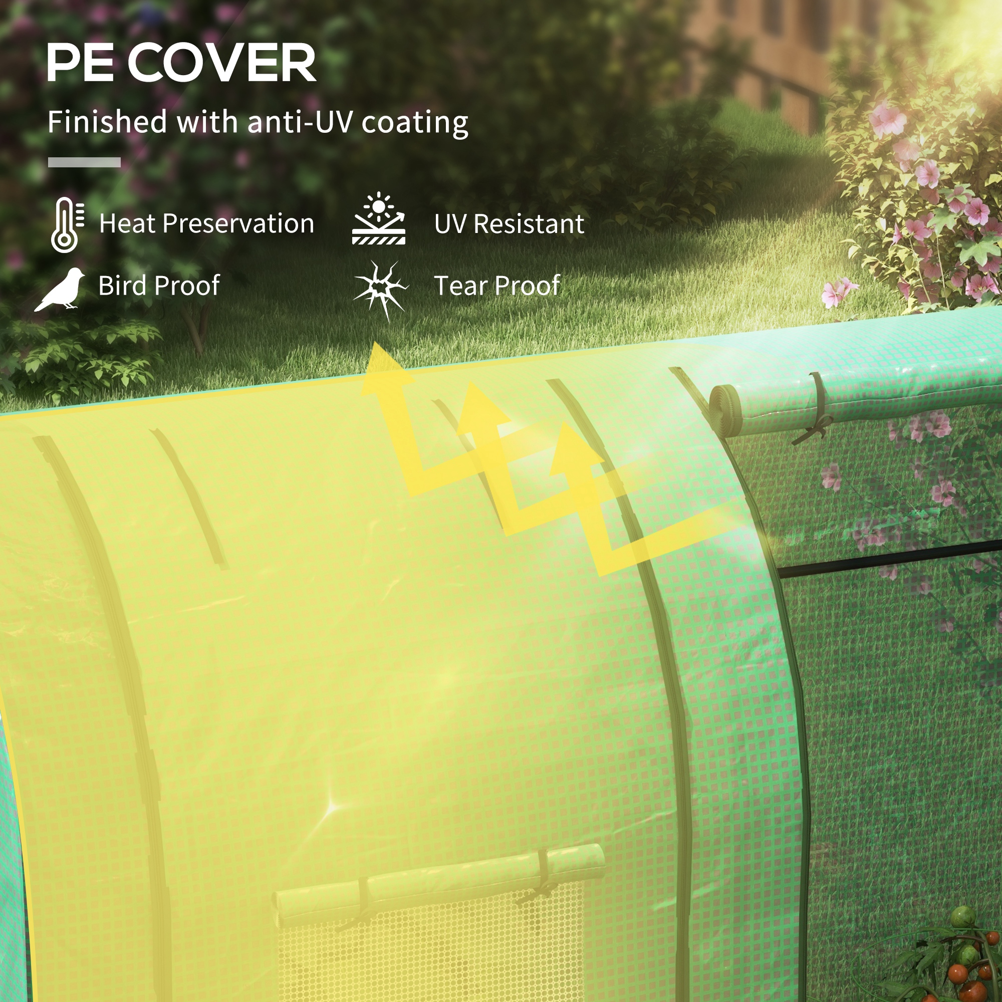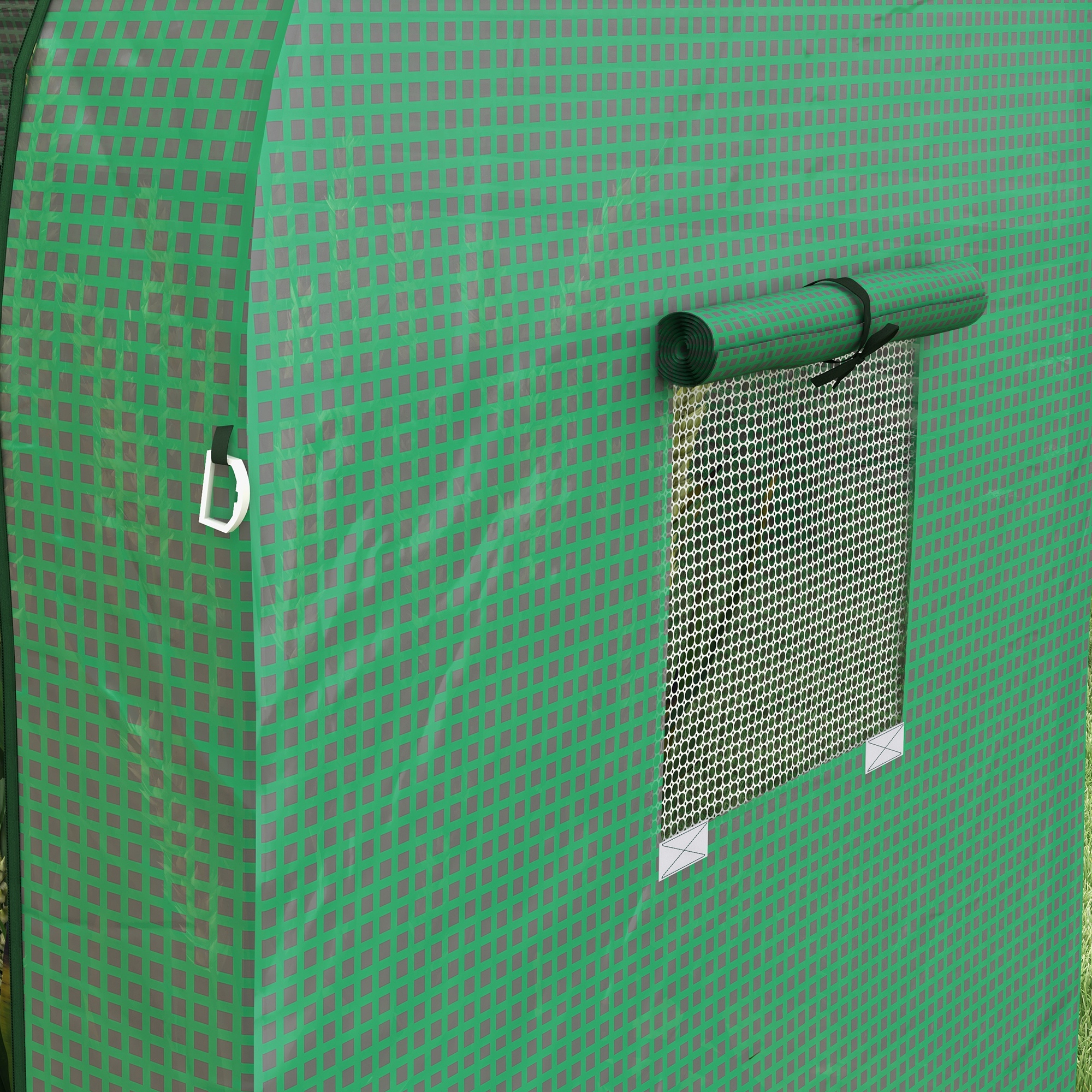 Home growing wherever with this Outsunny greenhouse. This Outsunny 94 x 185cm greenhouse comes in a two-room design, so you can separate plants to how you want. With a steel frame, the core is sturdy, with four guy ropes and four ground stakes included to pin into ground. The three-layer plastic cover creates a protective shield for inside - plants grow with cover against wind and rain. 10cm cover edges to bury into soil for extra stability.