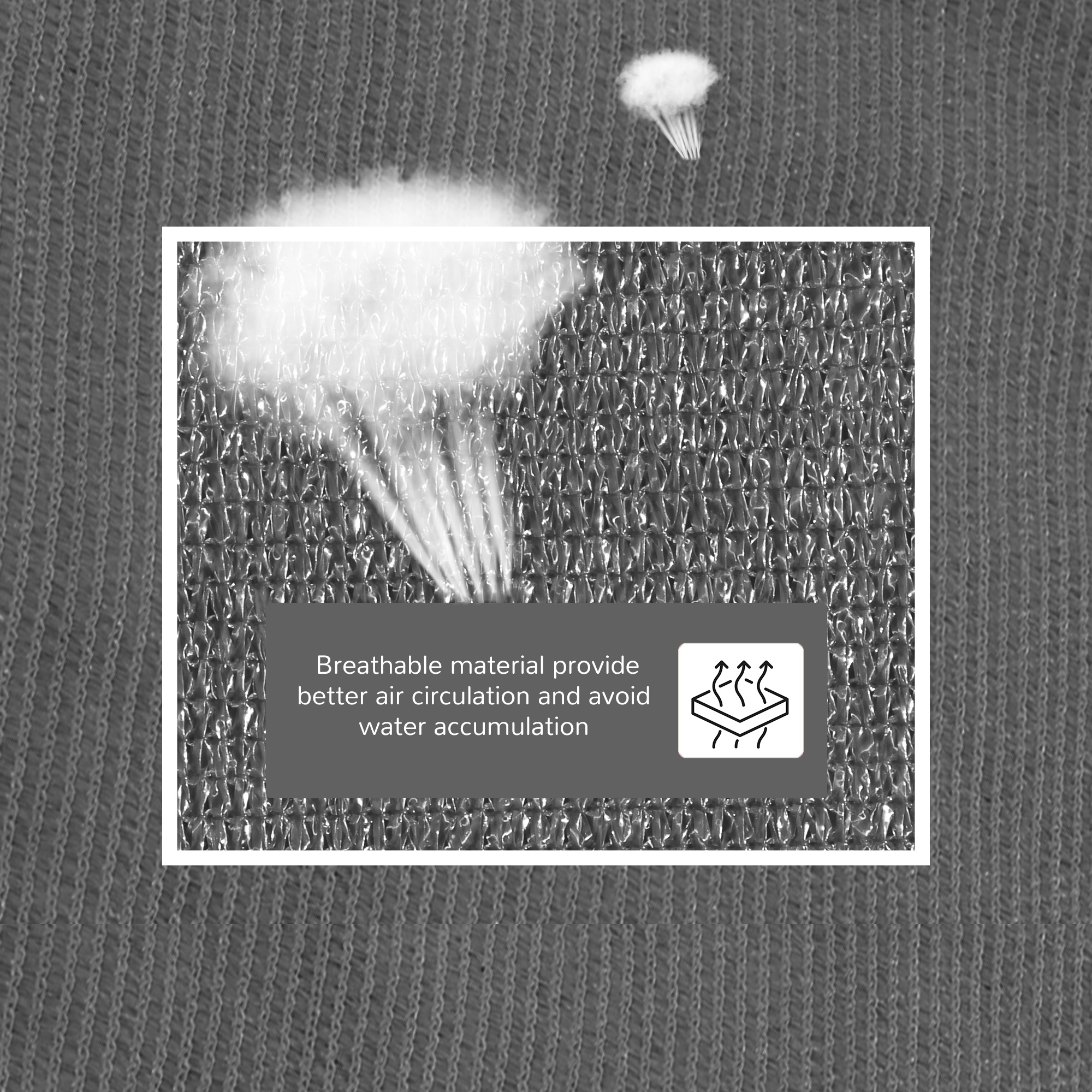 - Double stitched corners with stainless steel rings to attach and hold in place to the chosen area