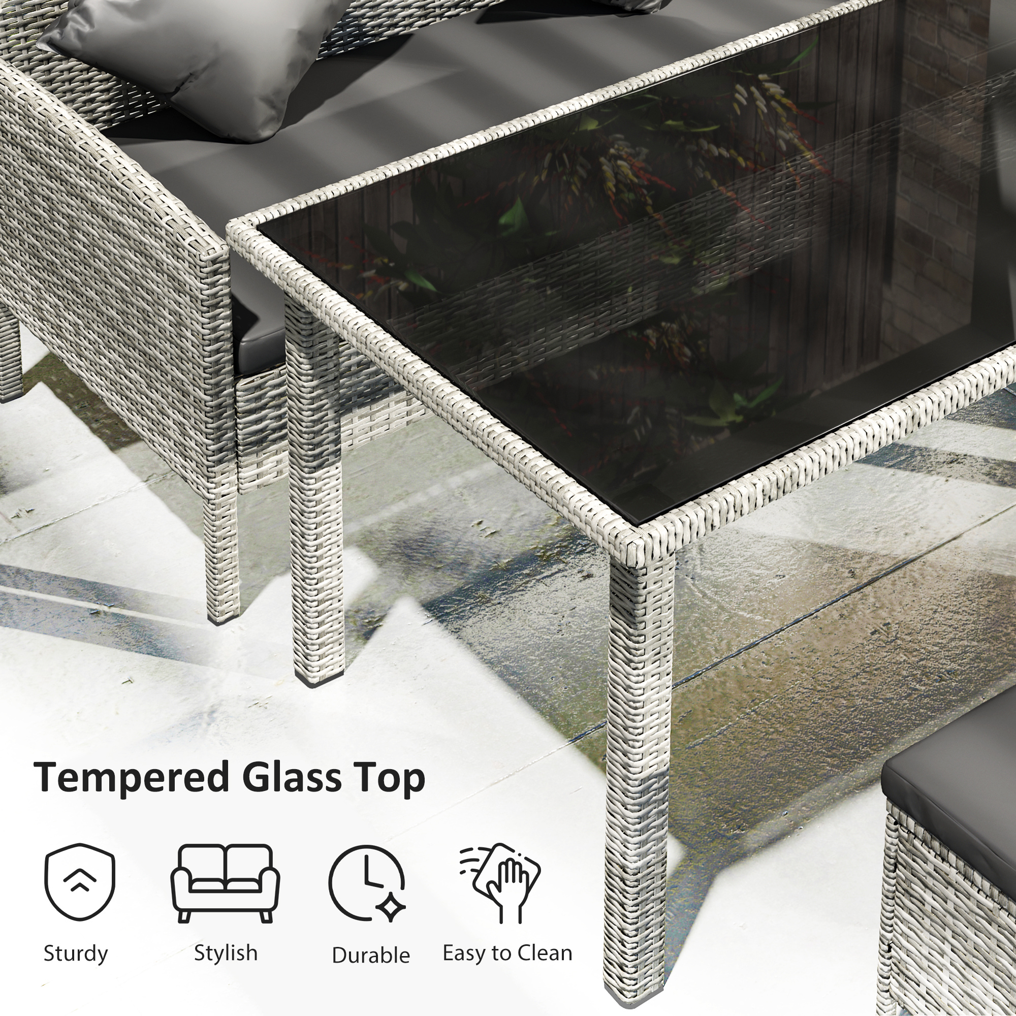 For an understatedly stylish and extremely comfortable garden sofa set, look to this rattan corner sofa set from Outsunny. Featuring two 2-seat lounger sofa, 2 footstool and a matching long table. The rattan furniture garden set is built from PE rattan with a galvanised metal frame for support. You'll love inviting friends and family over when the sun comes out to shine.