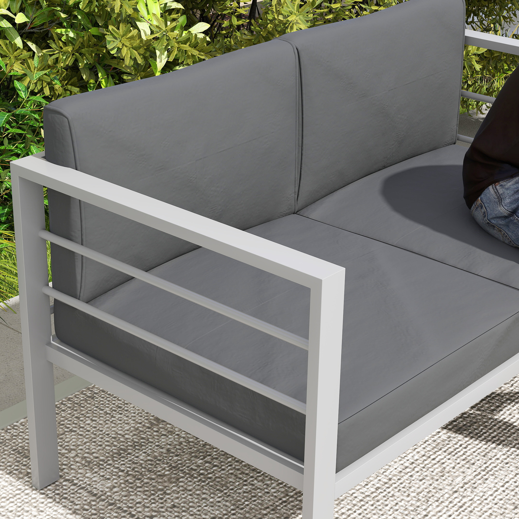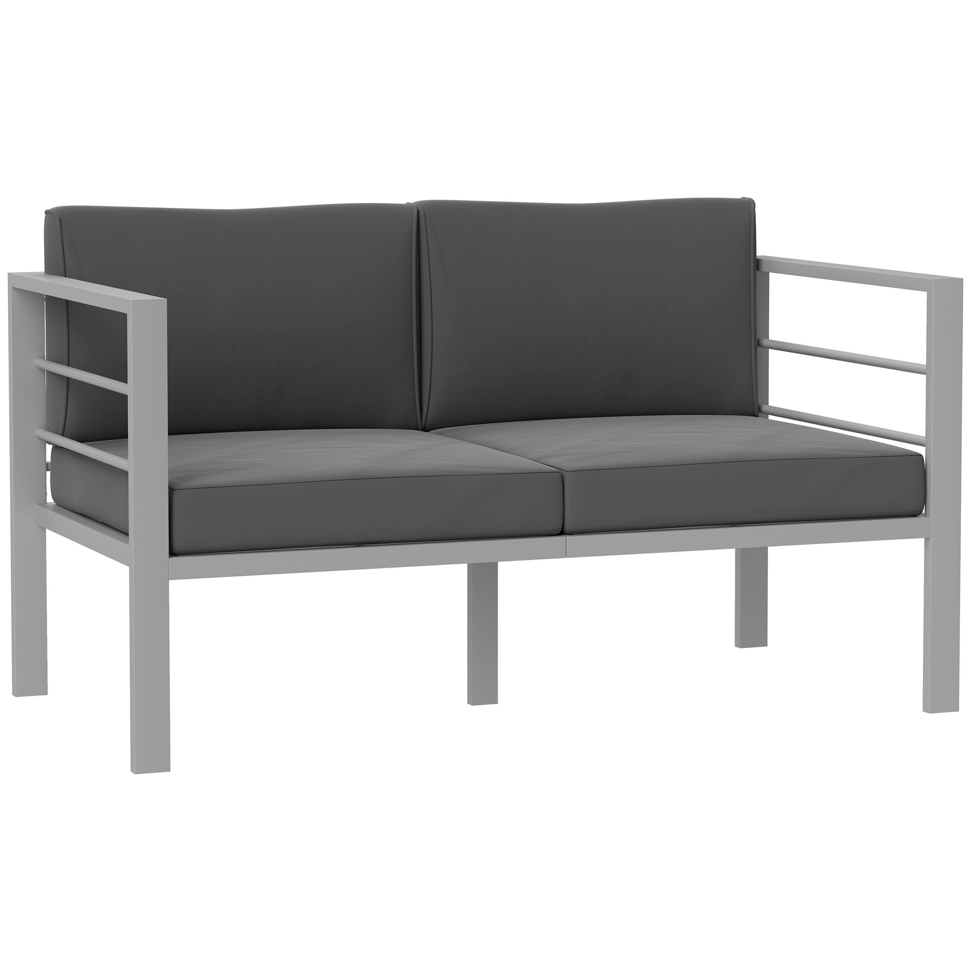 Outdoor comfort for two with this Outsunny garden loveseat. An aluminium frame for a strong piece which is tough enough for outdoor use, crafted into a simple modern boxy shape - a minimal piece which looks great in any outdoor space. With padded seat and back cushions, you'll keep comfortable.