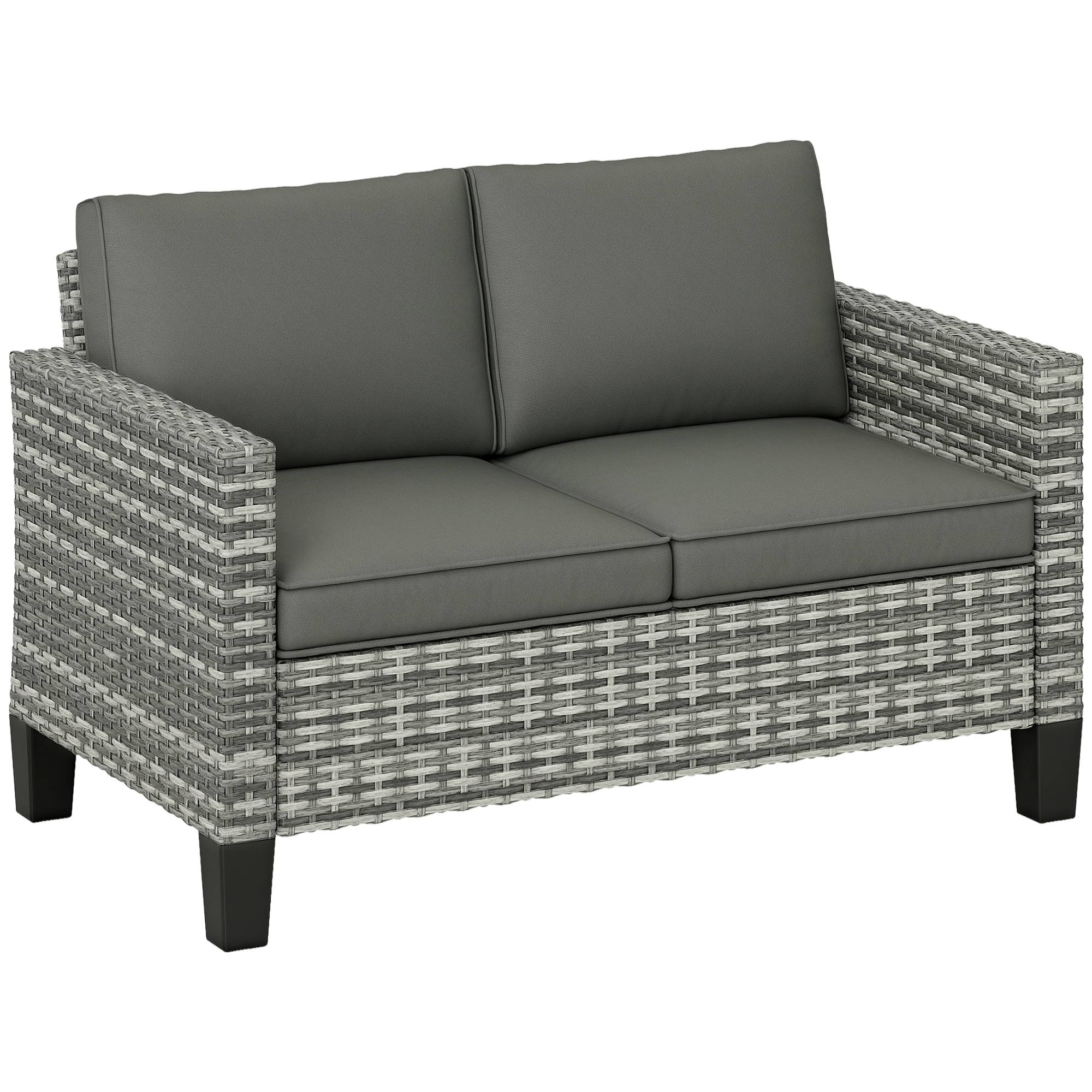 Outdoors times with company, made comfortable with this Outsunny outdoor loveseat. A galvanised steel frame with powder coating means a strong core, wrapped in tough plastic wicker for a protective outer. Thick cushions ensure comfort; patio sofa is complete with adjustable feet so it stands steady and balanced.
