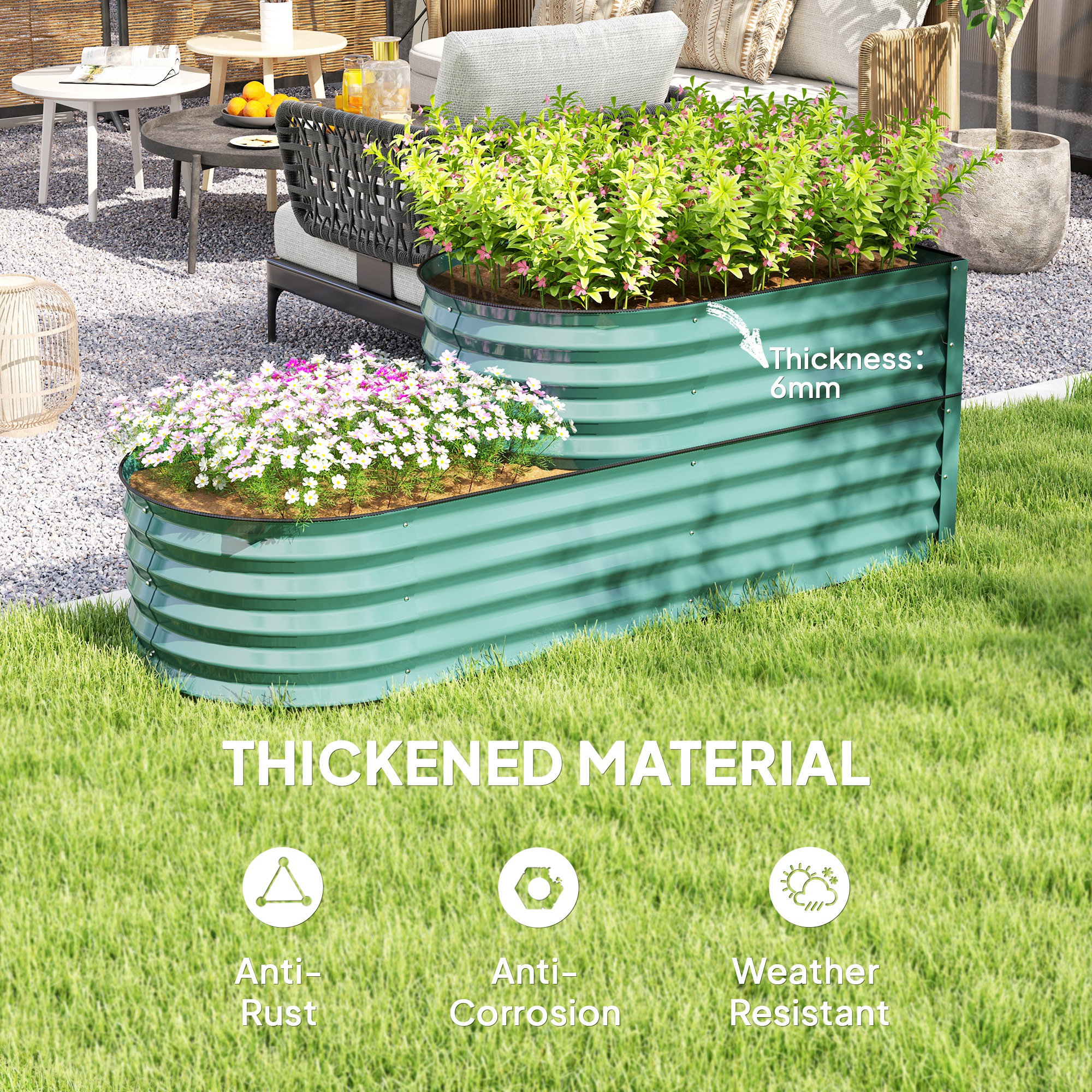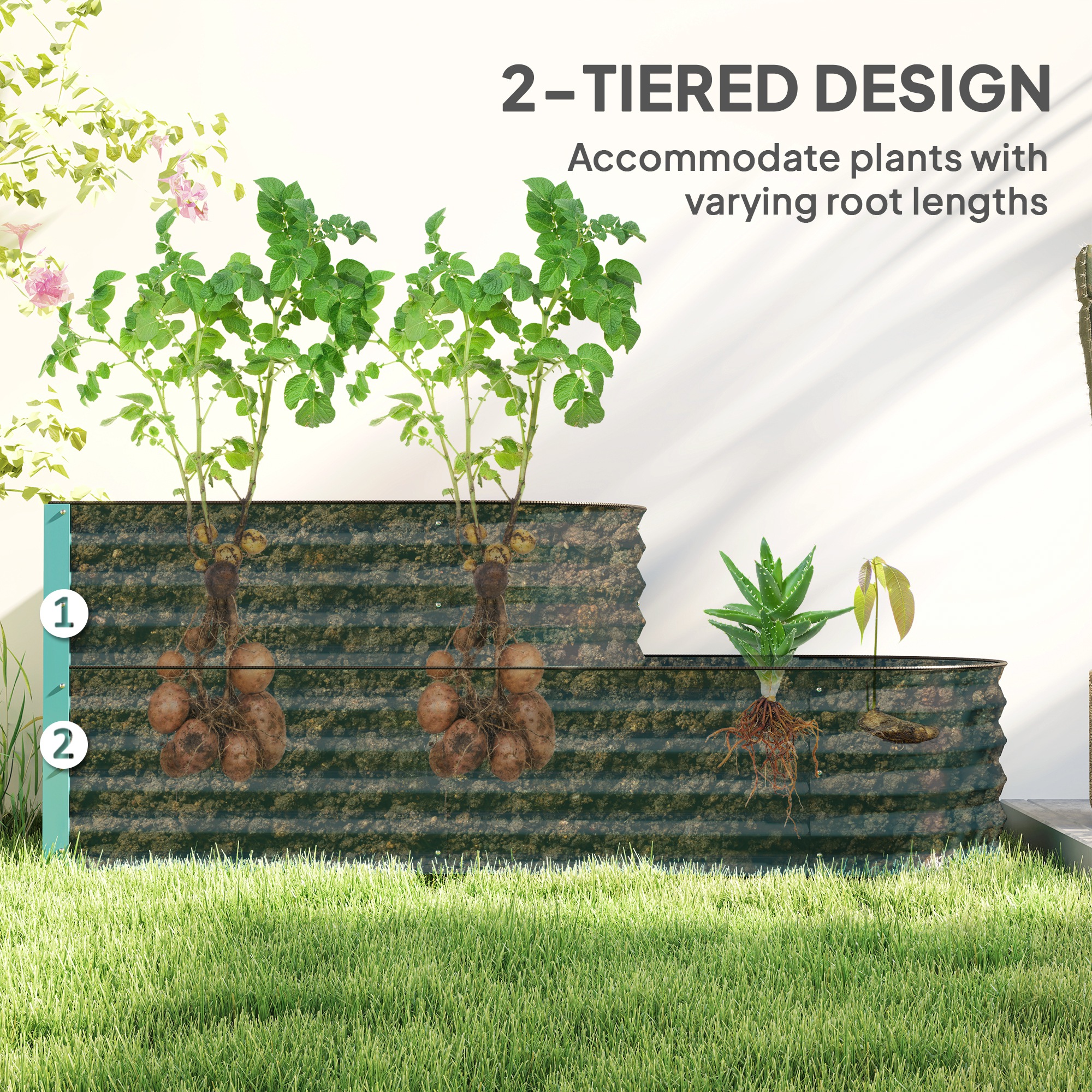 A place for plants to grow to their fullest, in their natural condition, with this Outsunny planter. The galvanised steel shell creates a safe fence, whilst the open bottom means direct contact with soil for excellent growth; plus it means no water build-up. Comes in a two-tier design: plenty of space for two different plants as you choose.