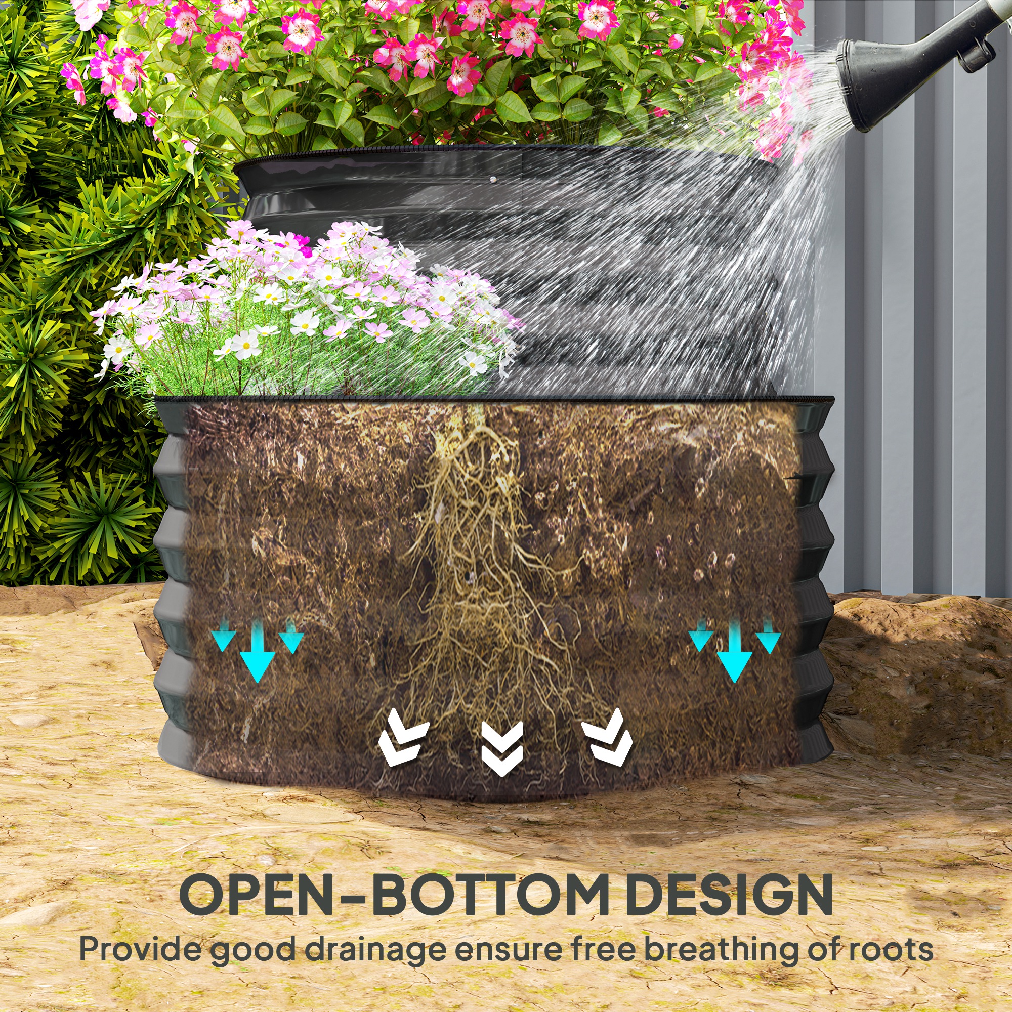 A place for plants to grow to their fullest, in their natural condition, with this Outsunny planter. The galvanised steel shell creates a safe fence, whilst the open bottom means direct contact with soil for excellent growth; plus it means no water build-up. Comes in a two-tier design: plenty of space for two different plants as you choose.