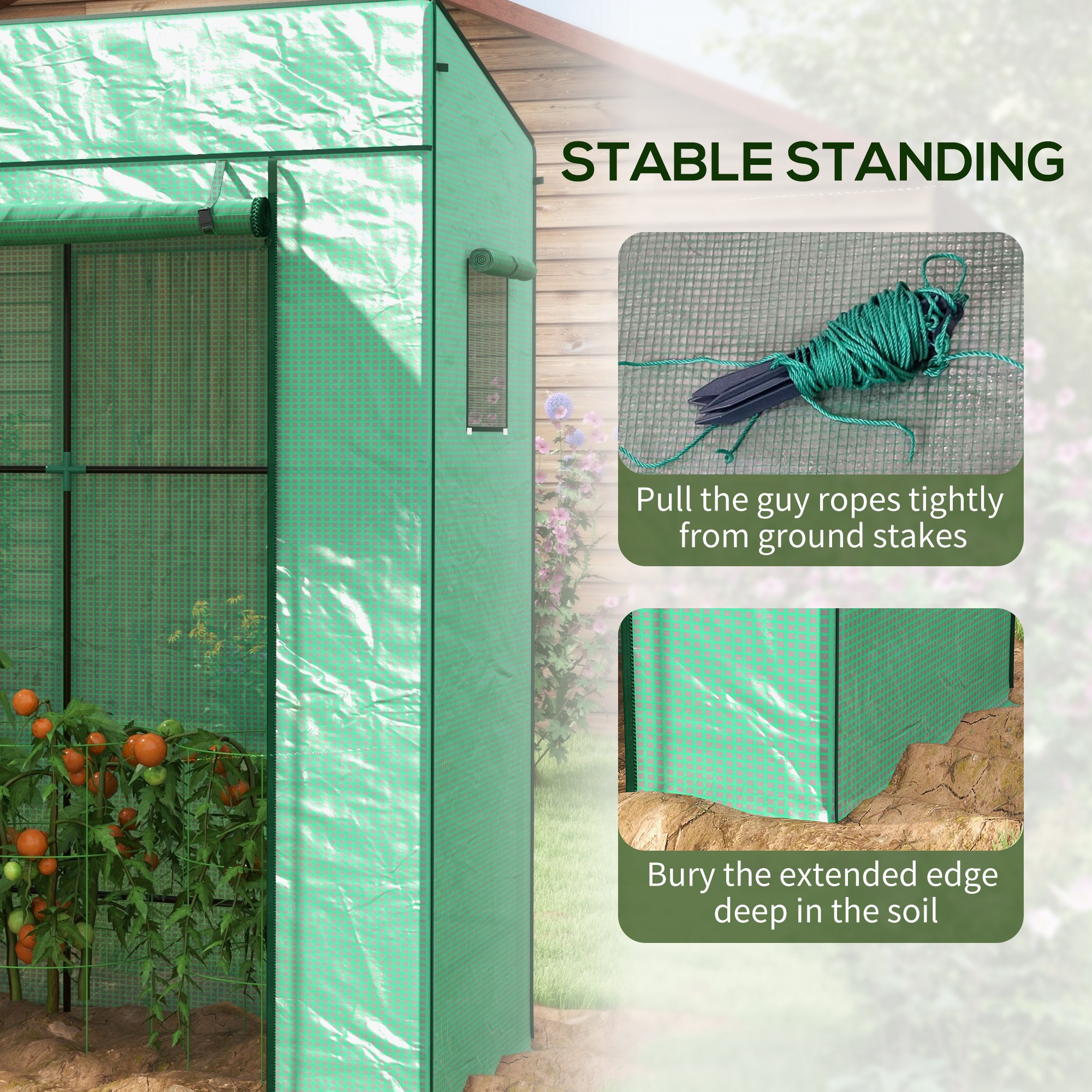 Grow a moderate variety of plants and vegetables with this 77 x 196cm Outsunny greenhouse. The plastic cover creates safe shelter inside, complete with a zipped door to access. Two windows bring in fresh air, when needed.