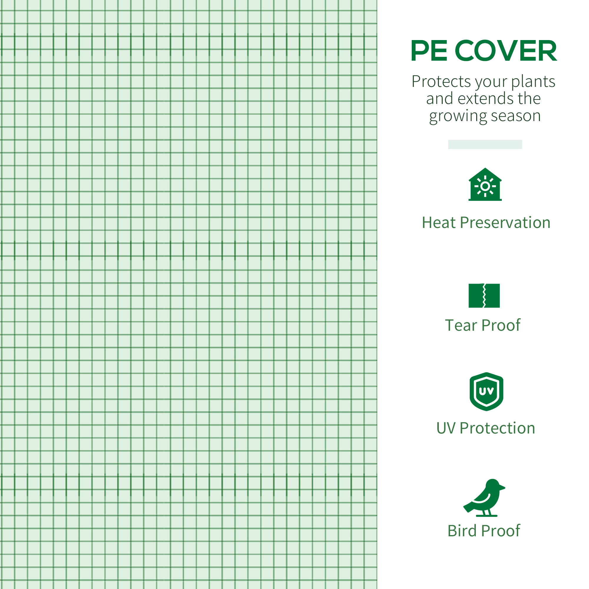 - PE cover offers UV and mild weather protection inside for plants to grow well