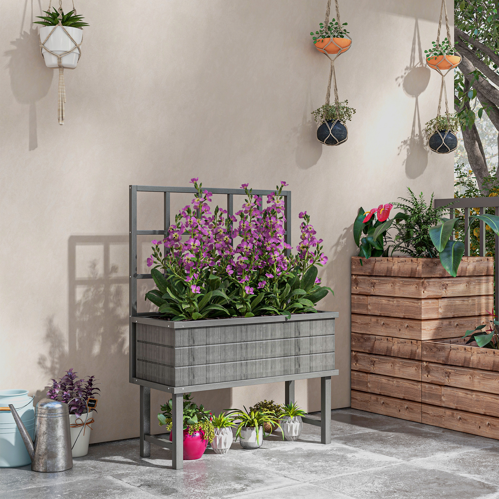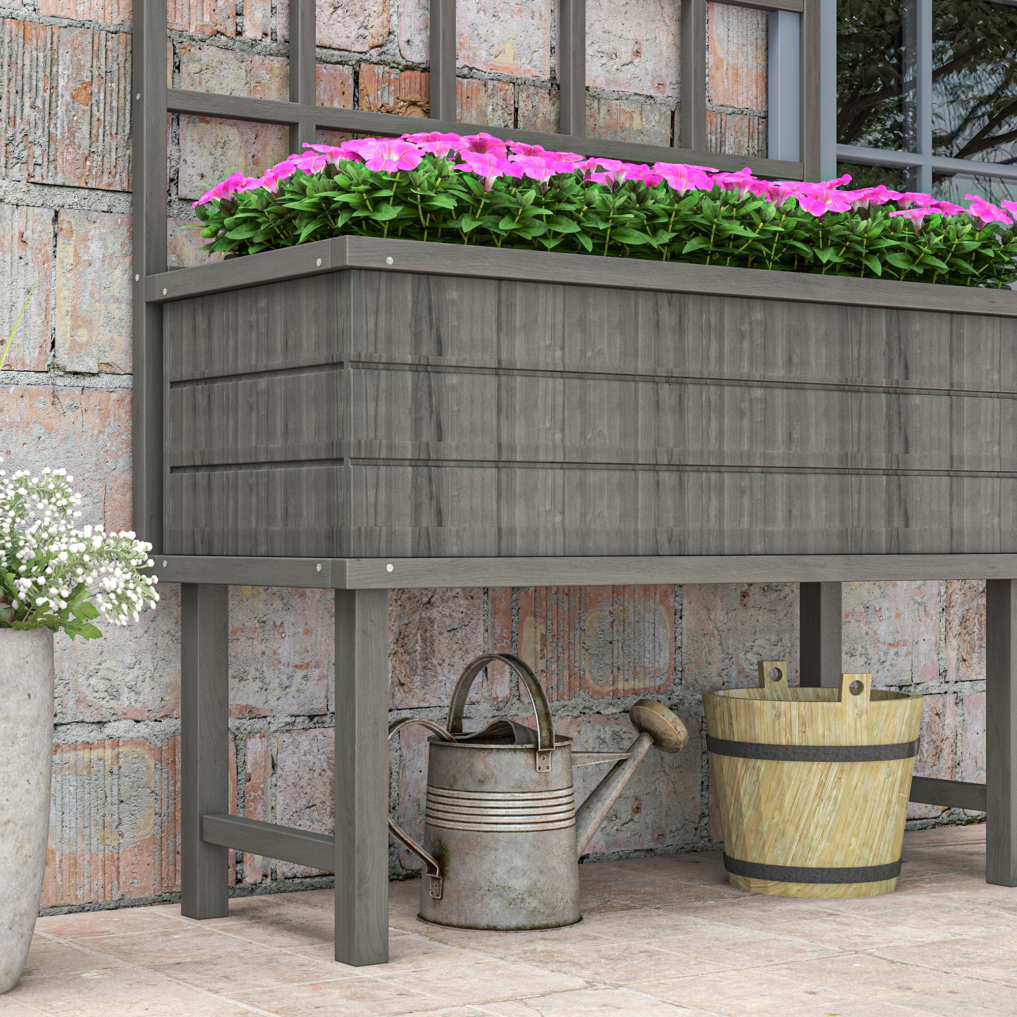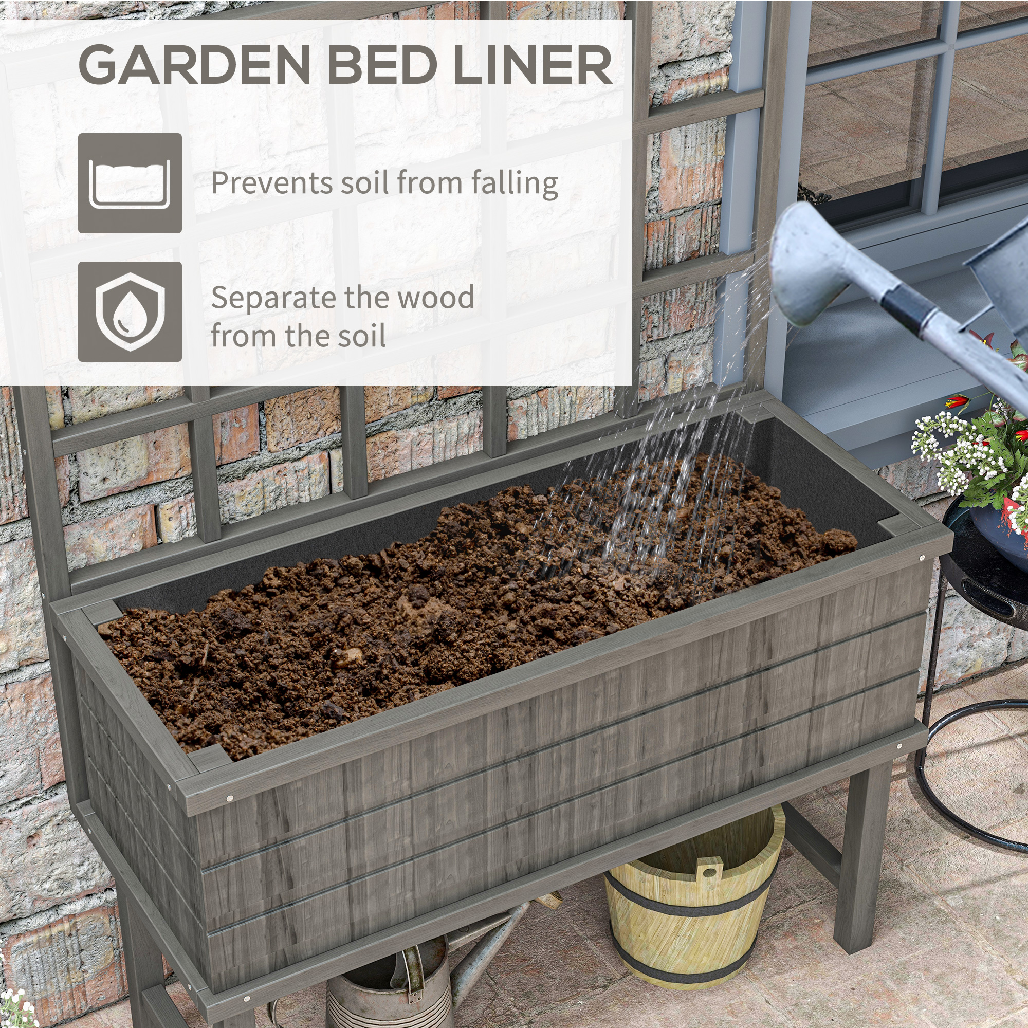 - Garden raised planting bed with back trellis: duo design