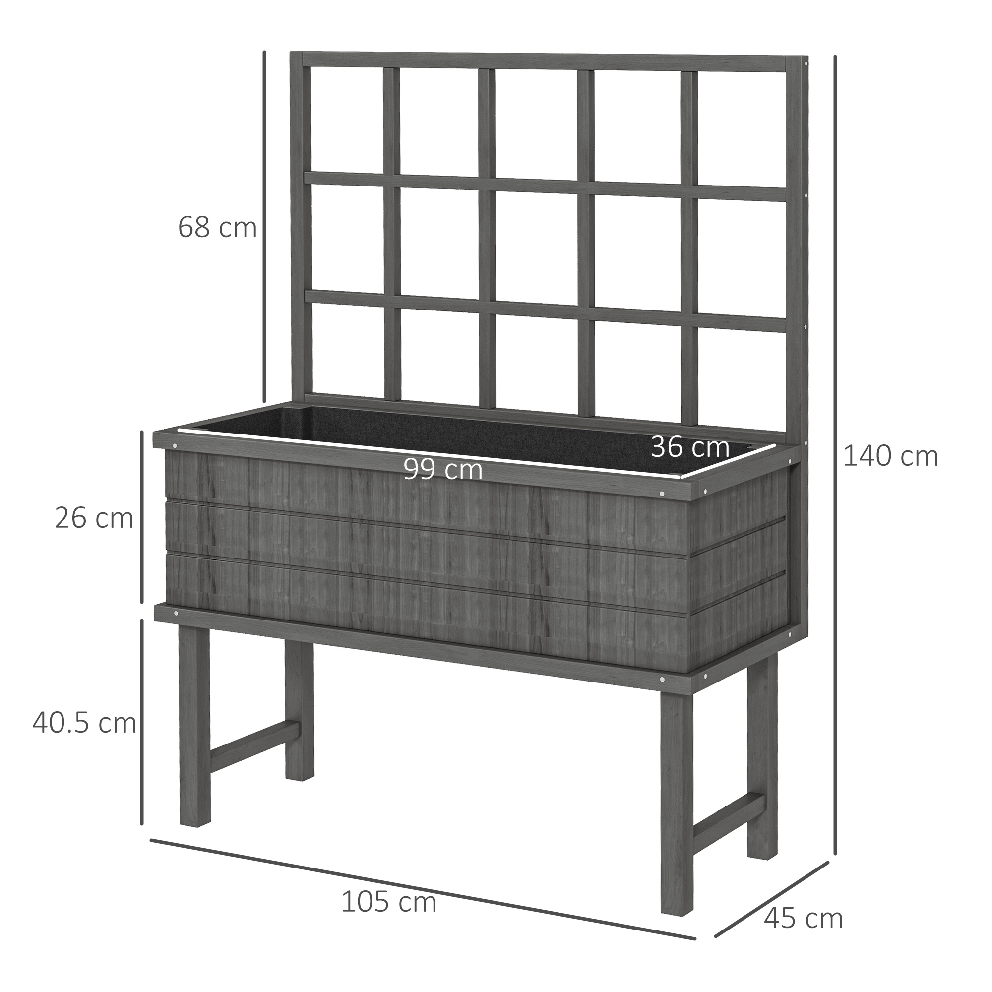 - Inner Planting Size: 99W x 36D x 26Hcm