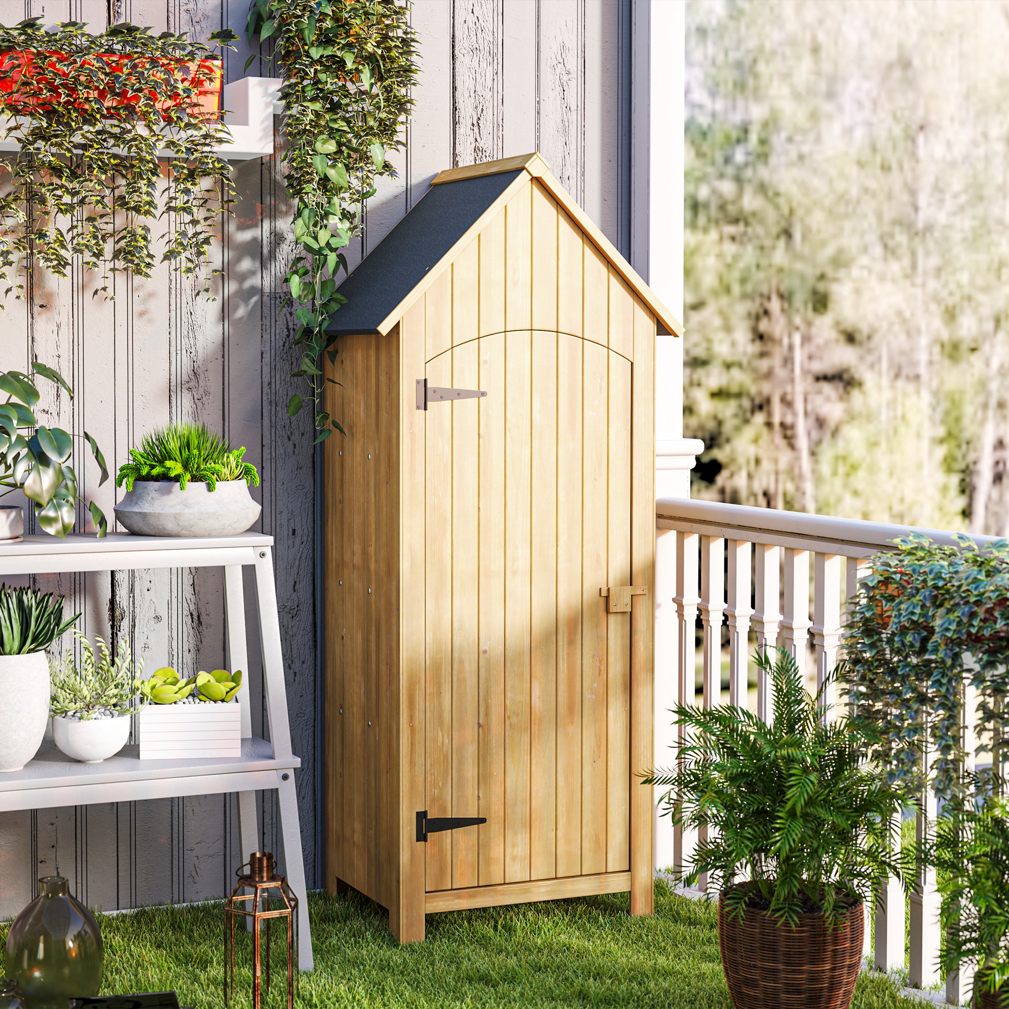 If your wooden shed and tools are cluttering up space, it's time they had their own spot – in our Outsunny garden tool storage shed! Everything is discreetly stored behind the large bolted door, yet always easily accessible. The bitumen on the gable roof keeps everything inside dry. With its enchanting gable roof, the tool shed beautifies your outdoor area and magically clears away the clutter.
