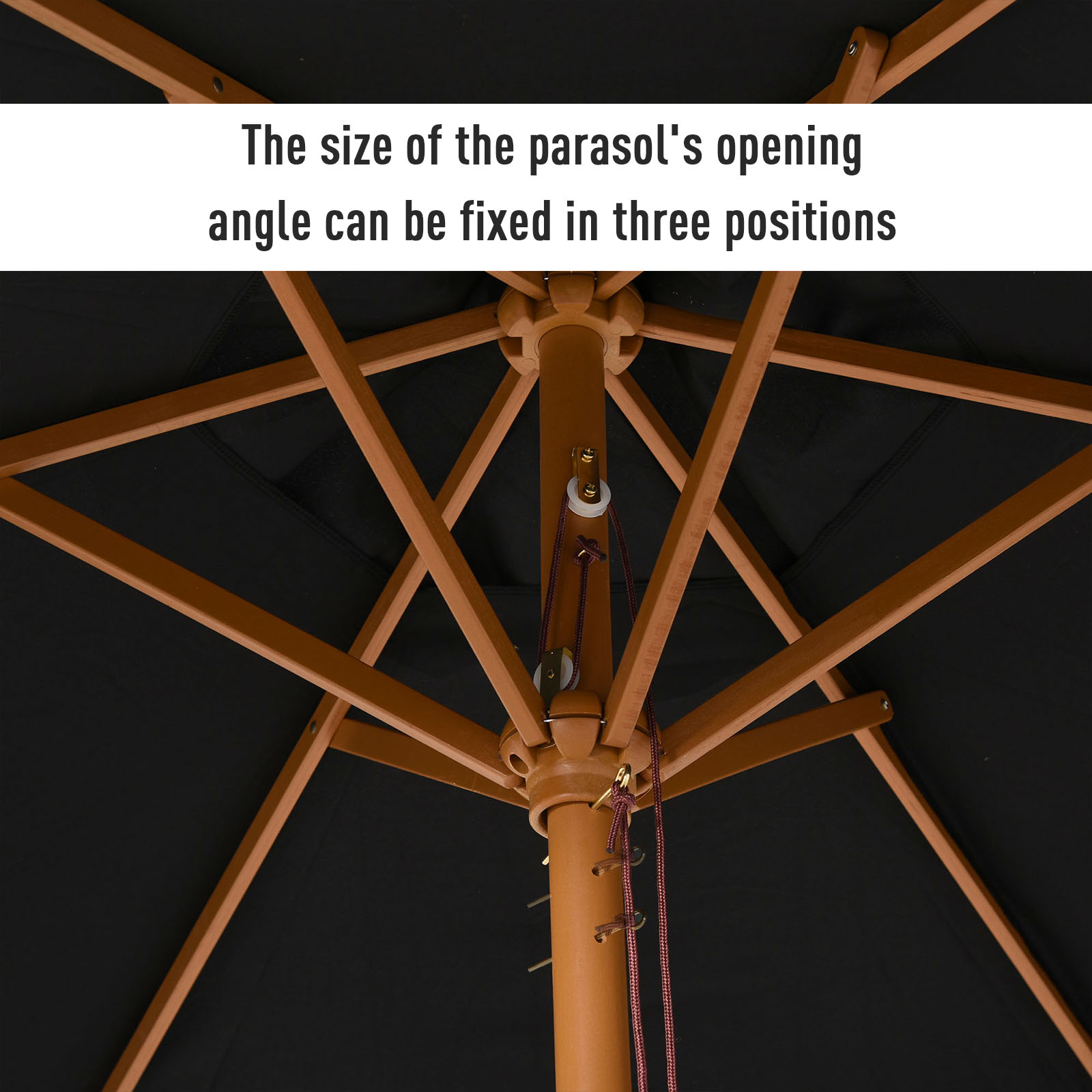 - 2.5m large parasol supported by 6 wooden ribs