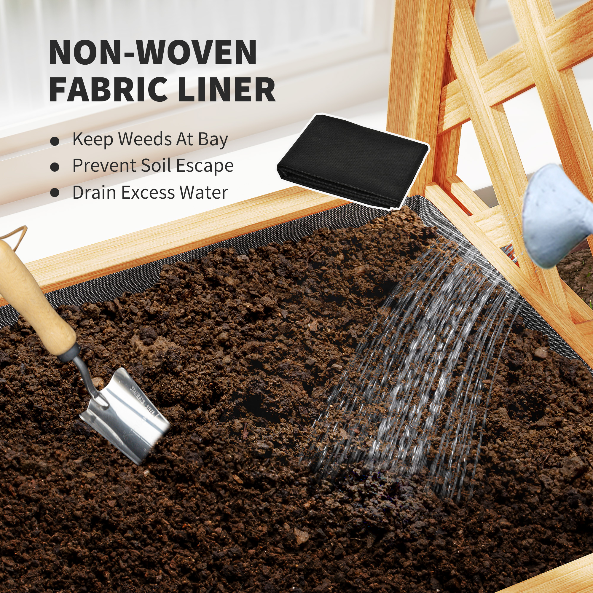 - Non-woven fabric liner curbs weeds and manages soil drainage