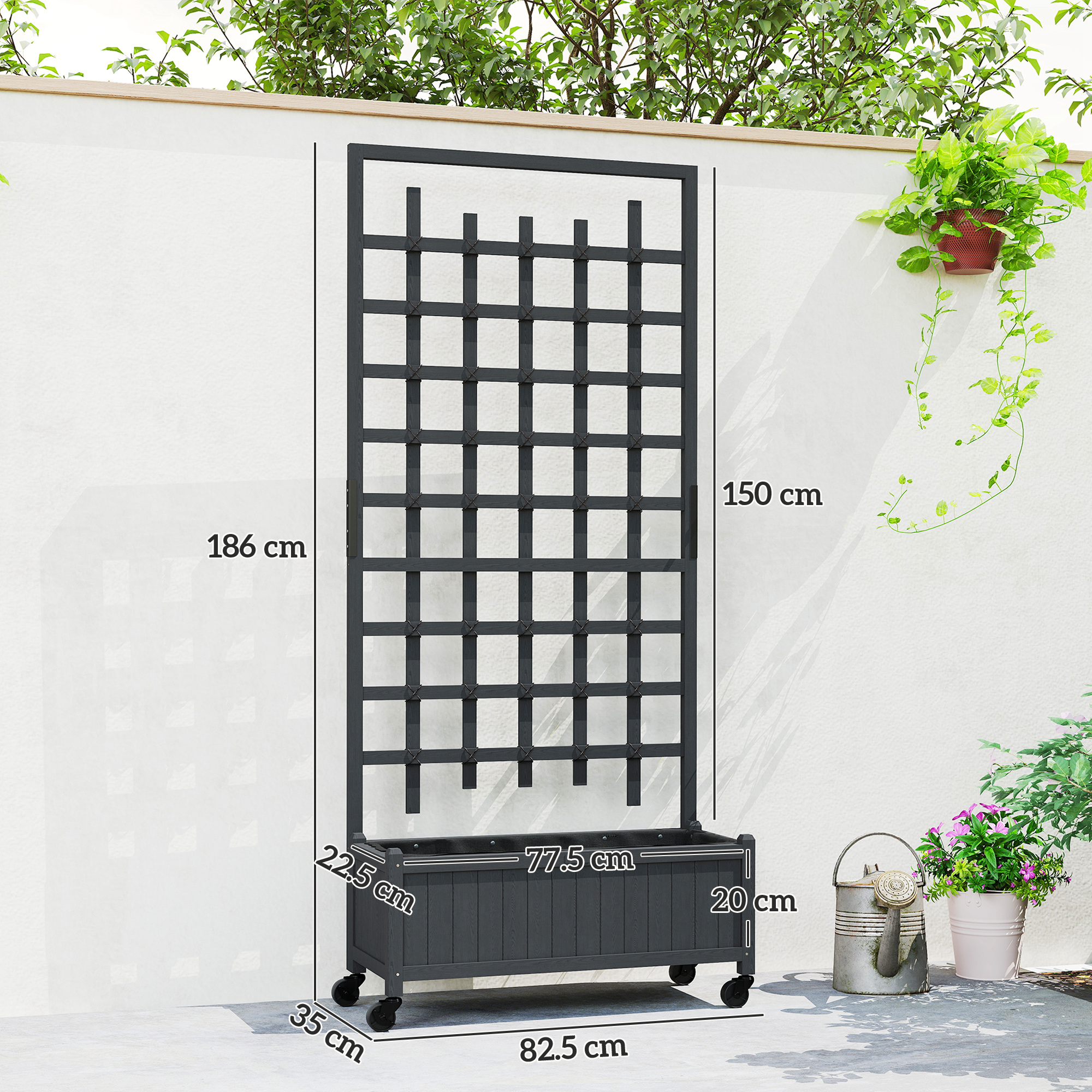 - Four wheels - move trellis around easily. Two brakes to stand