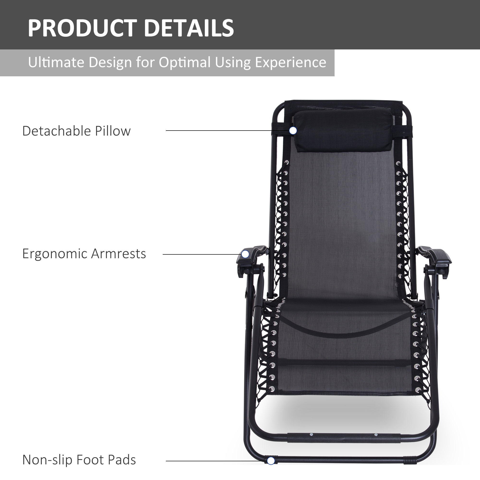Take your sun relaxation time to the next level with reclining garden chairs from Outsunny. Evenly distributing your weight, the anti gravity chair lifts you up from the floor for total relaxation, whenever. Made from strong steel in a powder coated finish, the frame of garden loungers is strong and resistant to peeling. The back reclines to lean back easily, with a padded headrest for comfort. The gateway to relaxing in the garden, patio or balcony.