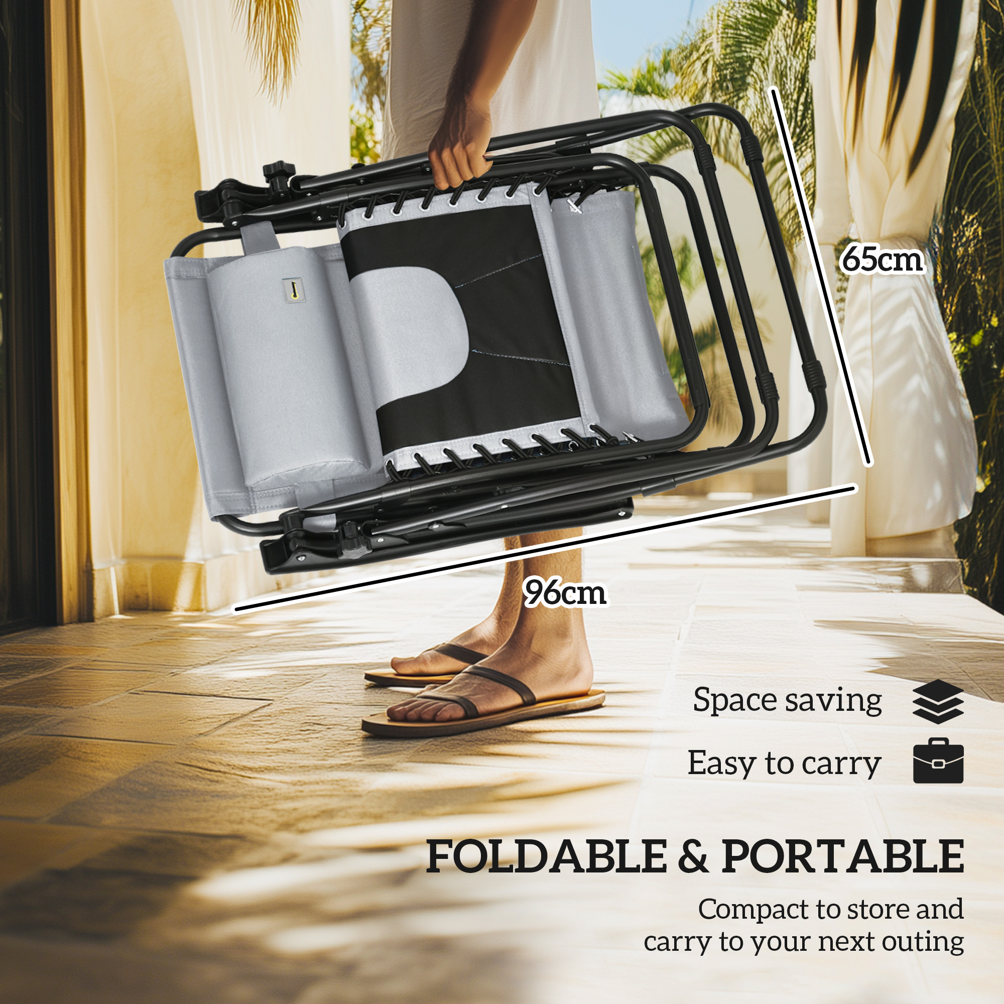 - Folding Dimension: 96L x 65W x 14H cm