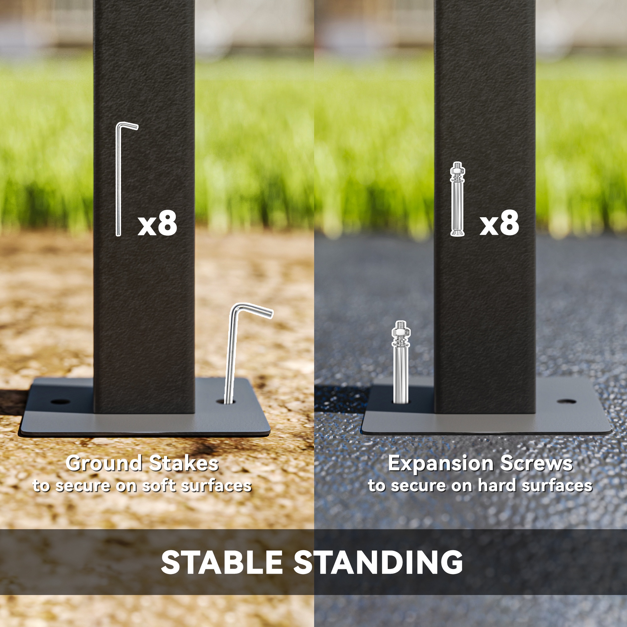 - Secure patio gazebo with stakes or screws for added stability