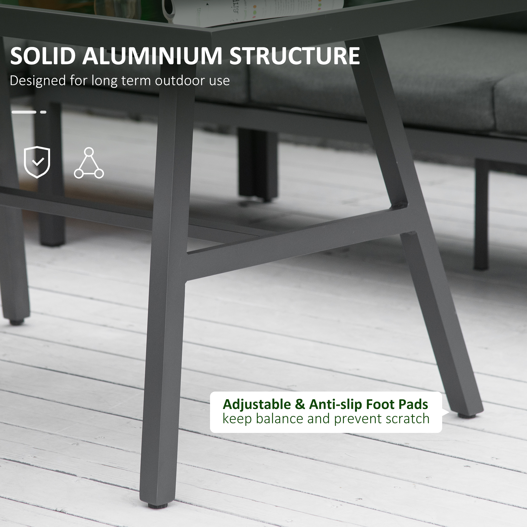 Bring comfort and leisure to your yard, garden, and patio with this contemporary 8-seater aluminium garden furniture sets by Outsunny. This beautiful patio set consists of two 3-seater, a long bench and a dining table, which can seat up to 8 people. Comfy backrest and seat cushions guarantee comfortable seating. A fantastic addition to your garden and outdoor areas, you'll love inviting friends over to relax and dine with you.