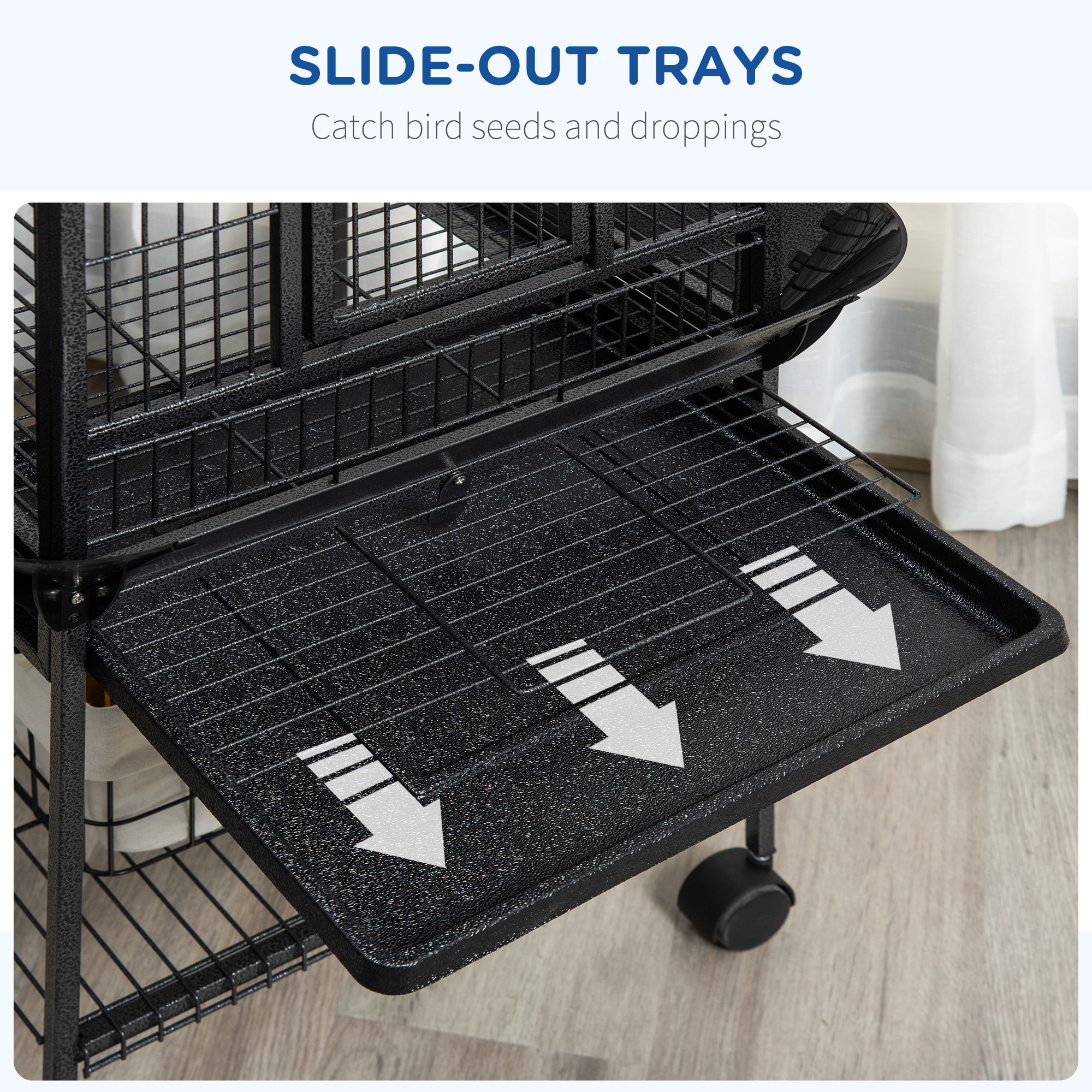 Struggling with a cramped, messy cage that steals time with your pet? Imagine the daily frustration of scattered seeds and tedious cleaning. This PawHut parrot cage offers a solution. Its spacious inner and integrated play top provide a joyful haven for your friend. Meanwhile, slide-out trays make cleaning effortless, giving you back those precious moments of interaction and ensuring your home stays tidy. This budgie cage simplifies care and enriches your bird's life.