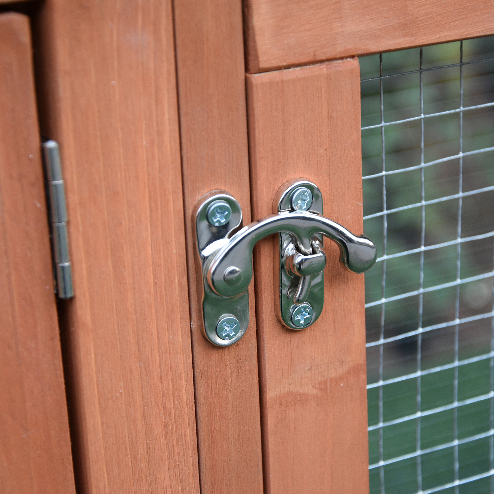 This duck house from PawHut is ideal for use with rabbits, guinea pigs, and other similar sized animals. An internal ramp provides quick access between the two. Lockable doors and slide-out trays provide easy access for cleaning, feeding and other routine tasks. Constructed of natural fir wood to against weather elements. Give your furry friend a comfortable living space from PawHut!