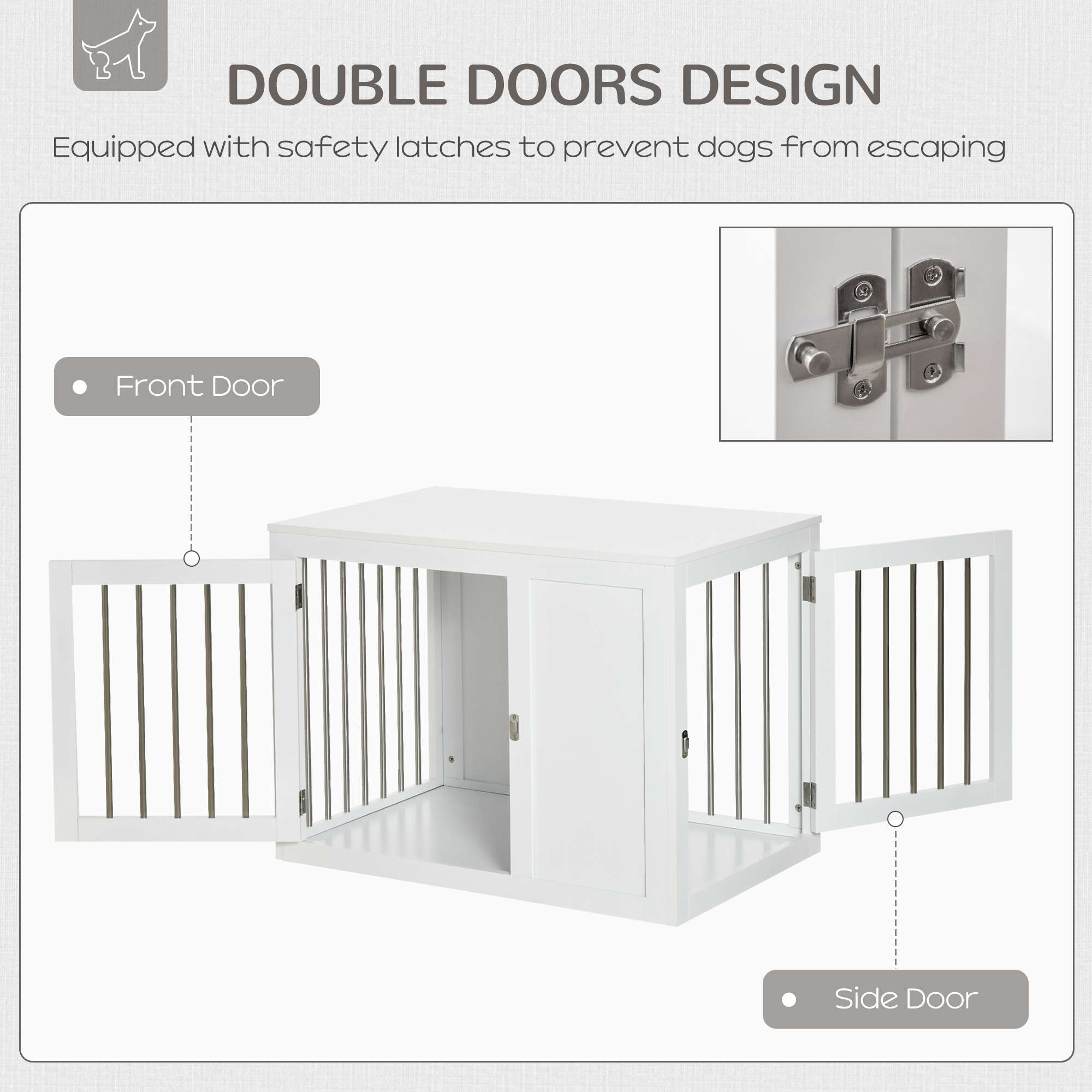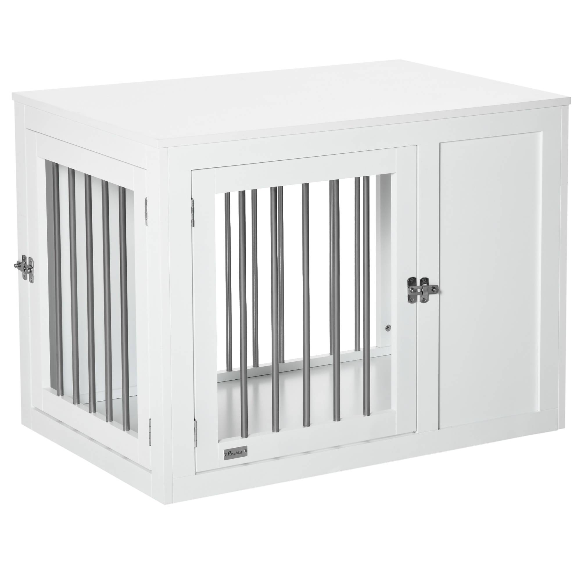 With this PawHut dog cage, pets will be comfortable and protected. Made from sturdy MDF, it's easy to clean and strong enough to hold medium dogs. Two doors for easy access so that pets can pass through make it much simpler to clean and maintain. Not just a dog crate, but a side table too - use the wide top to display your favourite pieces, making your home more aesthetically pleasing. A fantastic way to keep pets in a place, while giving your room a decorative look.