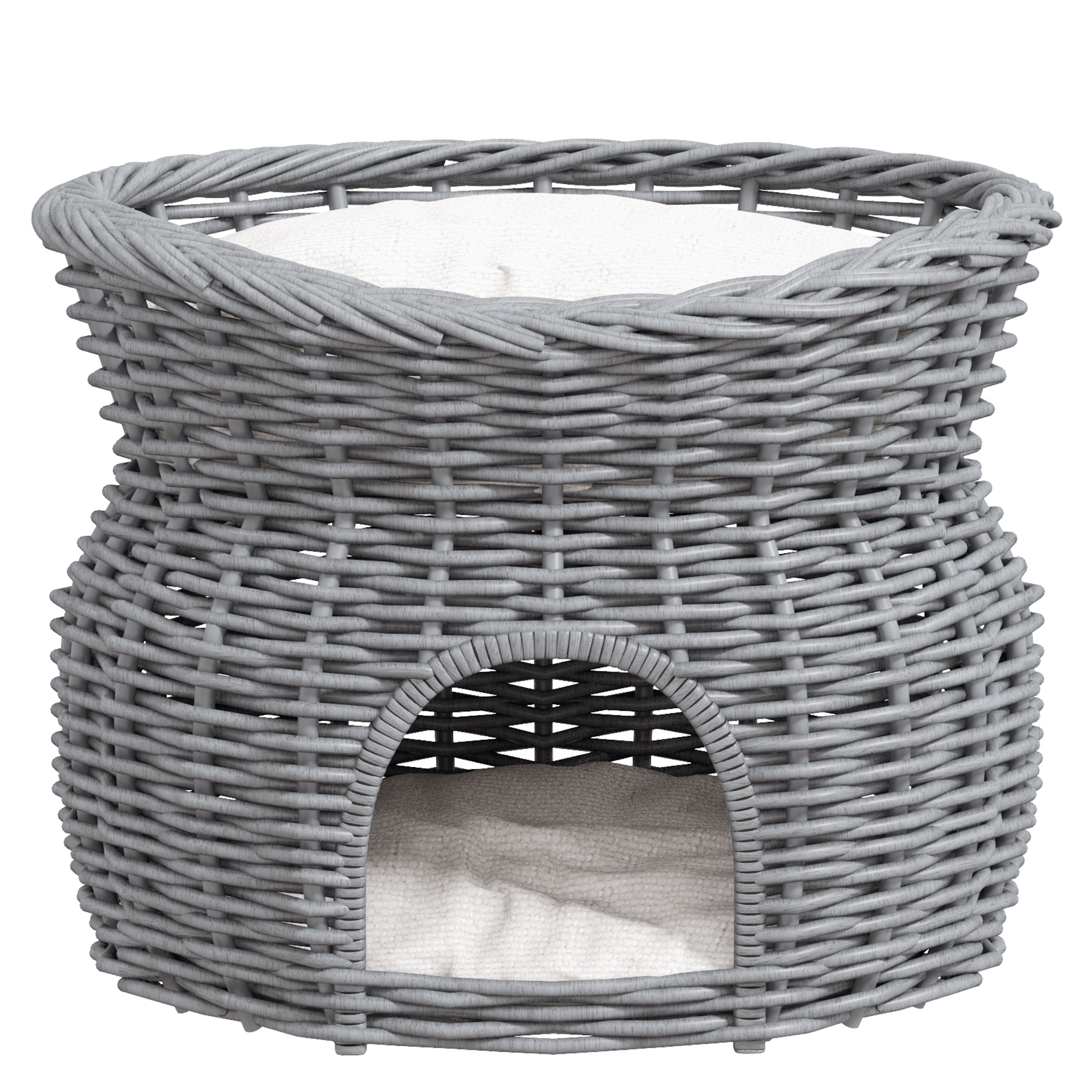 Stimulate your cat's natural instincts in a fun and safe way with a Pawhut 2-tier cat house. With many entertaining features, they promote exercise and play that helps keep a cat looking and feeling great. They provide a comfortable haven for security and rest, especially for timid cats that may need extra reassurance of their safety. Made of natural wicker, so that it’s sturdier and safer than the rest! Your cat will be delighted when it has a personal space from Pawhut that is all its own.