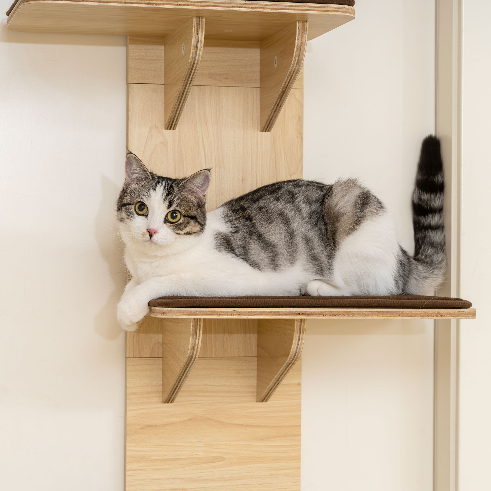 Tired of sacrificing your living space for your cat's happiness? This PawHut over-the-door cat shelf transforms unused door space into a four-tier vertical playground. Watch your cat confidently climb and perch on the robust, multi-layer board structure, designed to meet their natural instincts. This wall mounted cat tree provides a secure, elevated sanctuary, bringing joy to your pet and restoring harmony and space to your home.