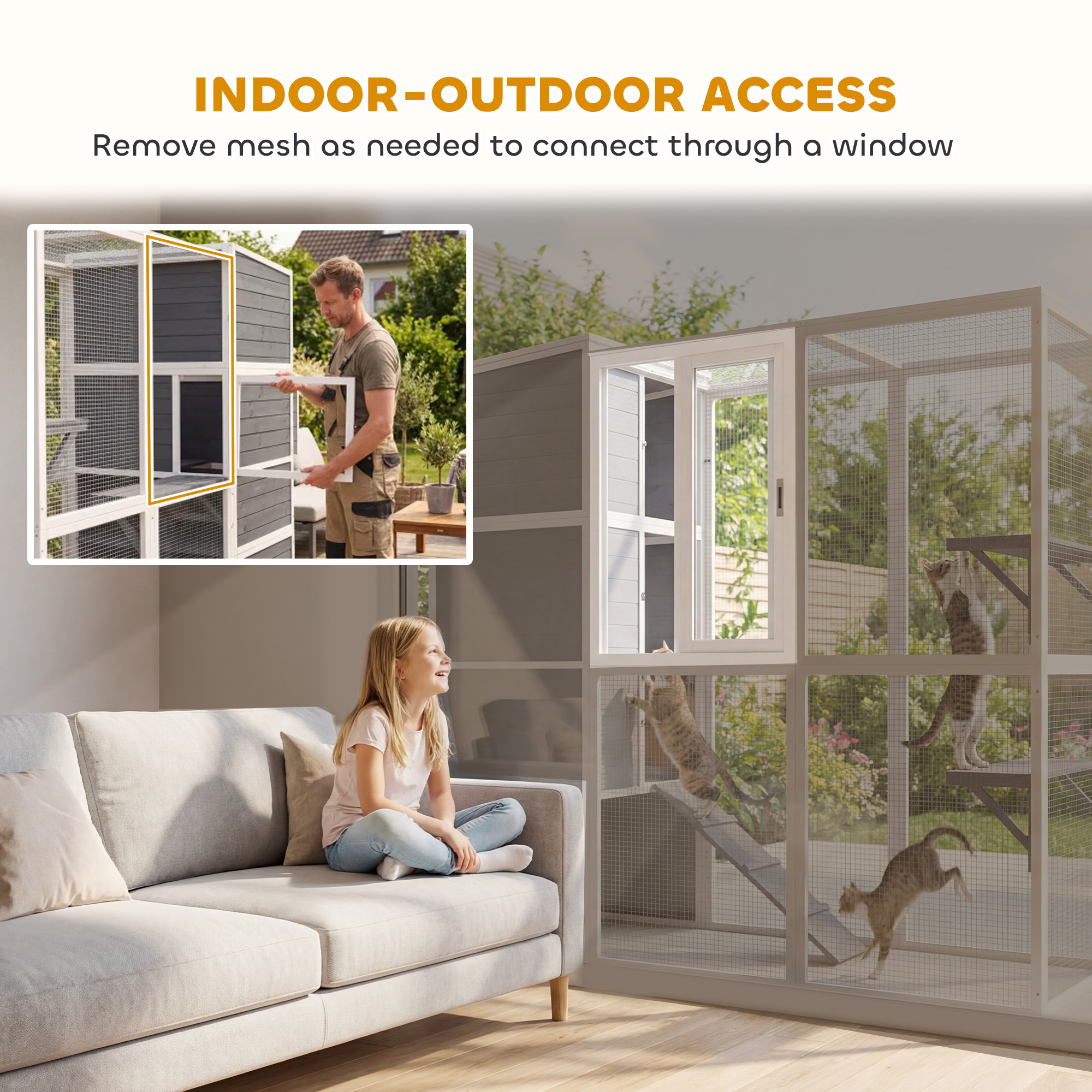 - Connects to your window, giving cats the freedom to move indoors/outdoors
