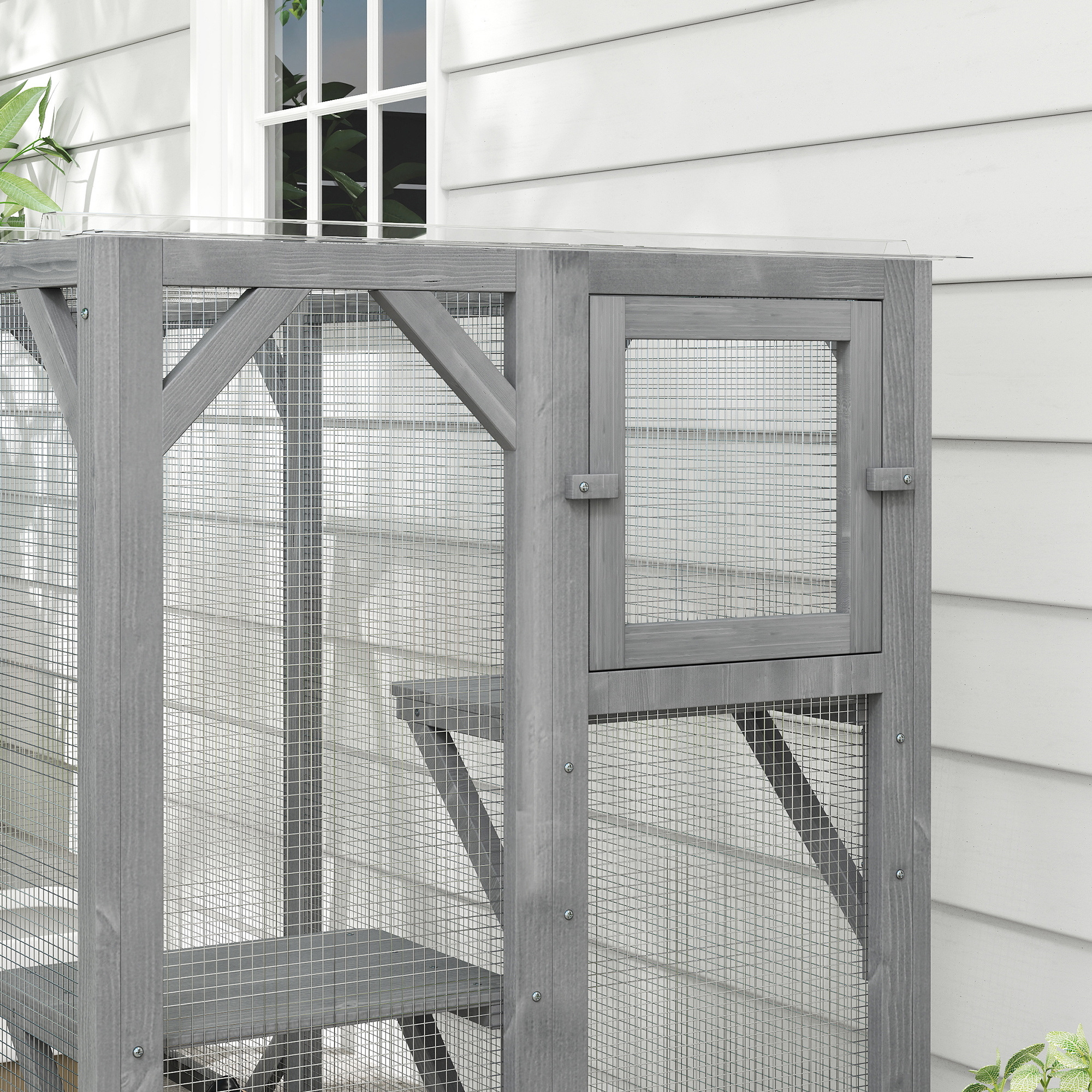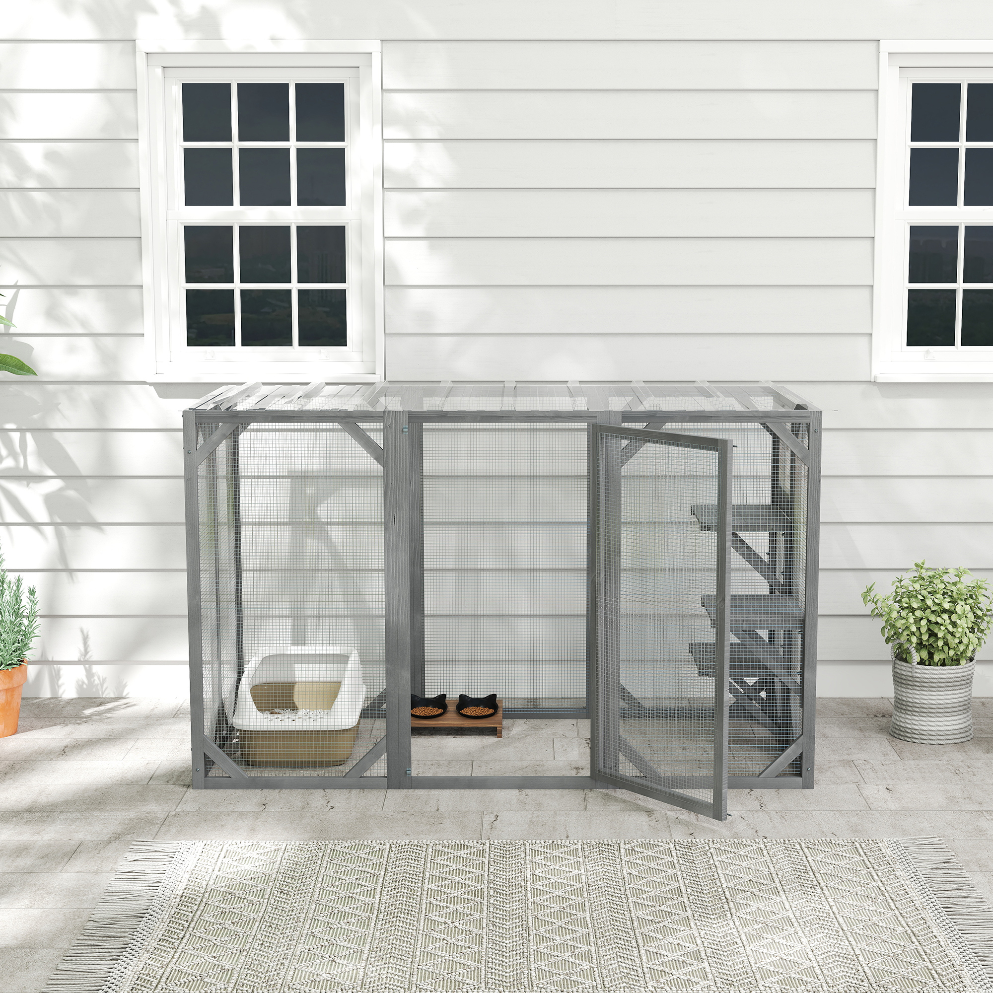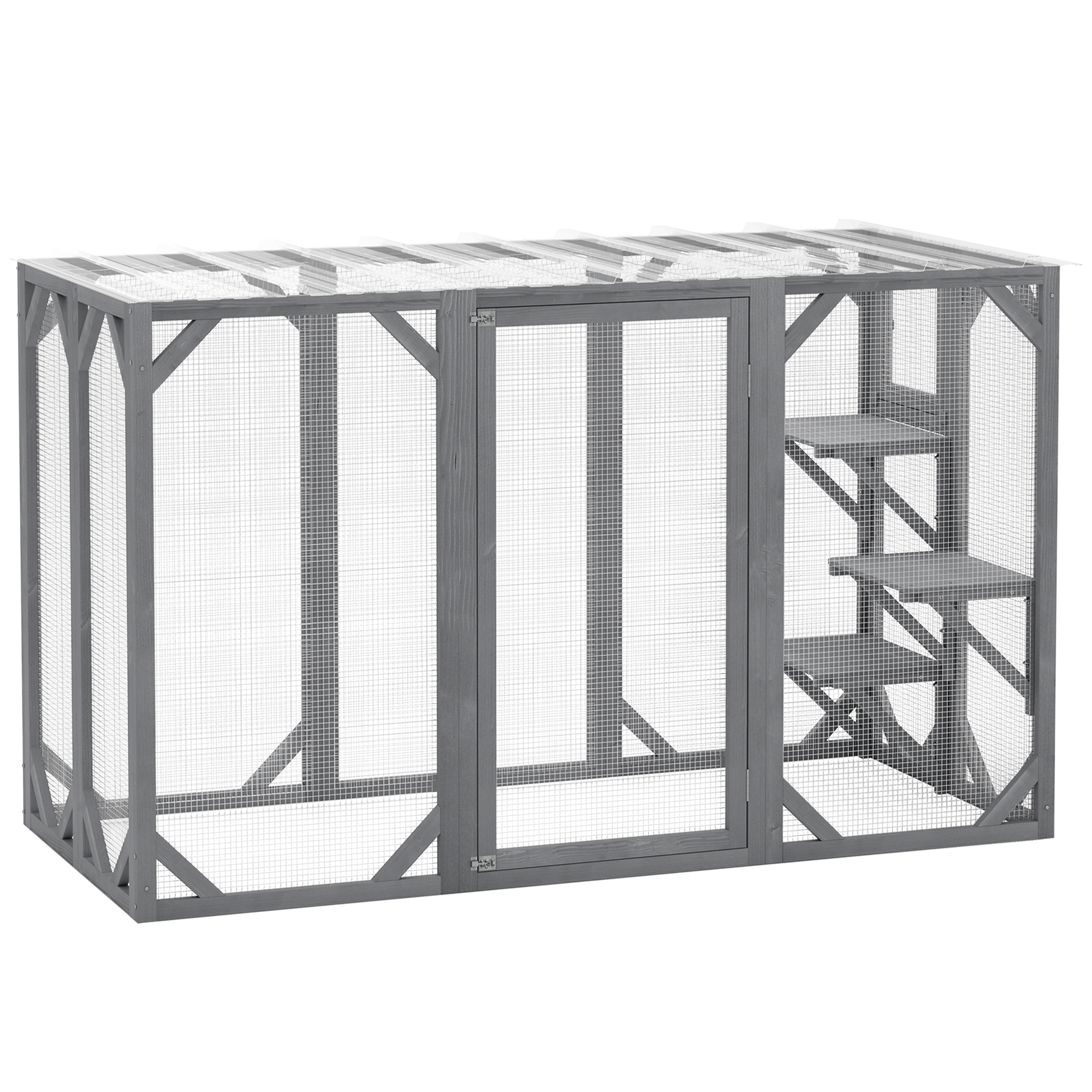 With the PawHut cat cage, pets get a safe outdoor space to relax, climb and play. It features three platforms at different heights for their favourite spots above ground and doors for easy access in and out – simplifying upkeep for you. The water-resistant roof keeps this cat enclosure dry, providing an outdoor sanctuary for fresh air, even in harsh weather.