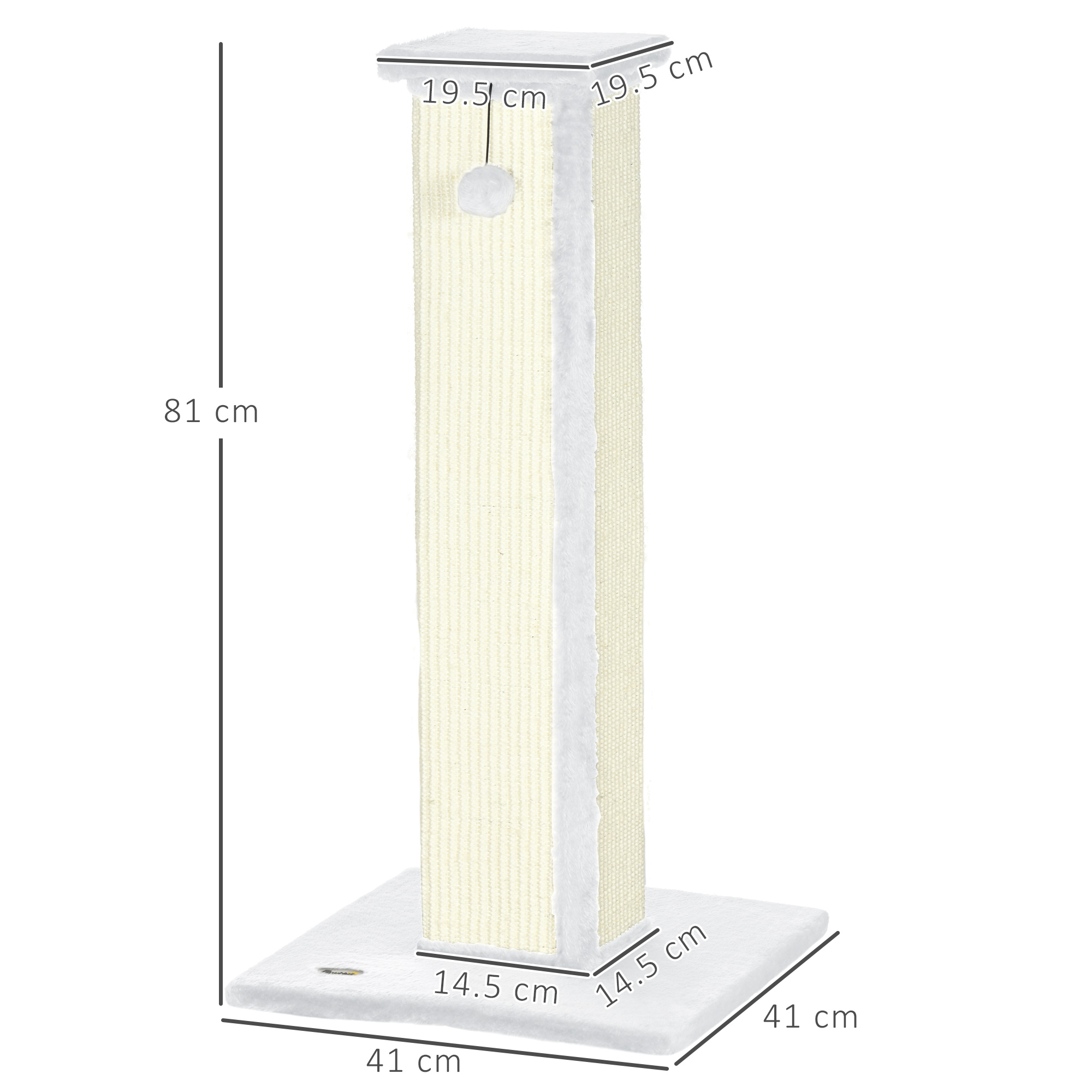 - Scratching post: 76H x 14.5L x 14.5Wcm