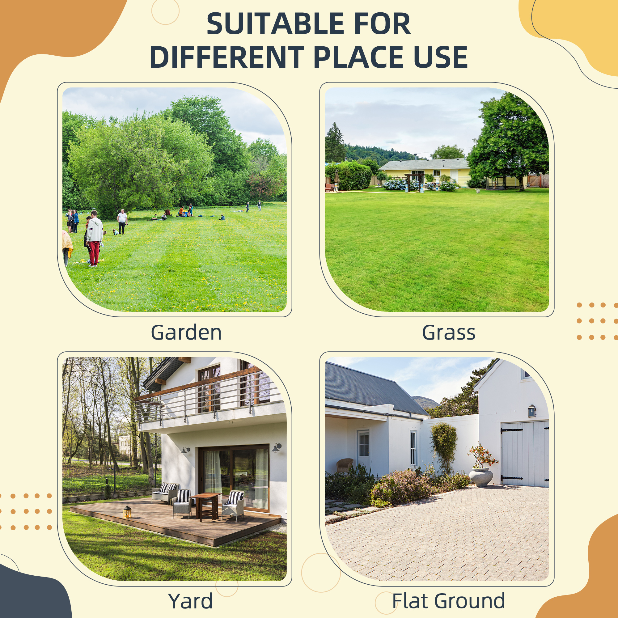 - Suitable for both grass and flat ground